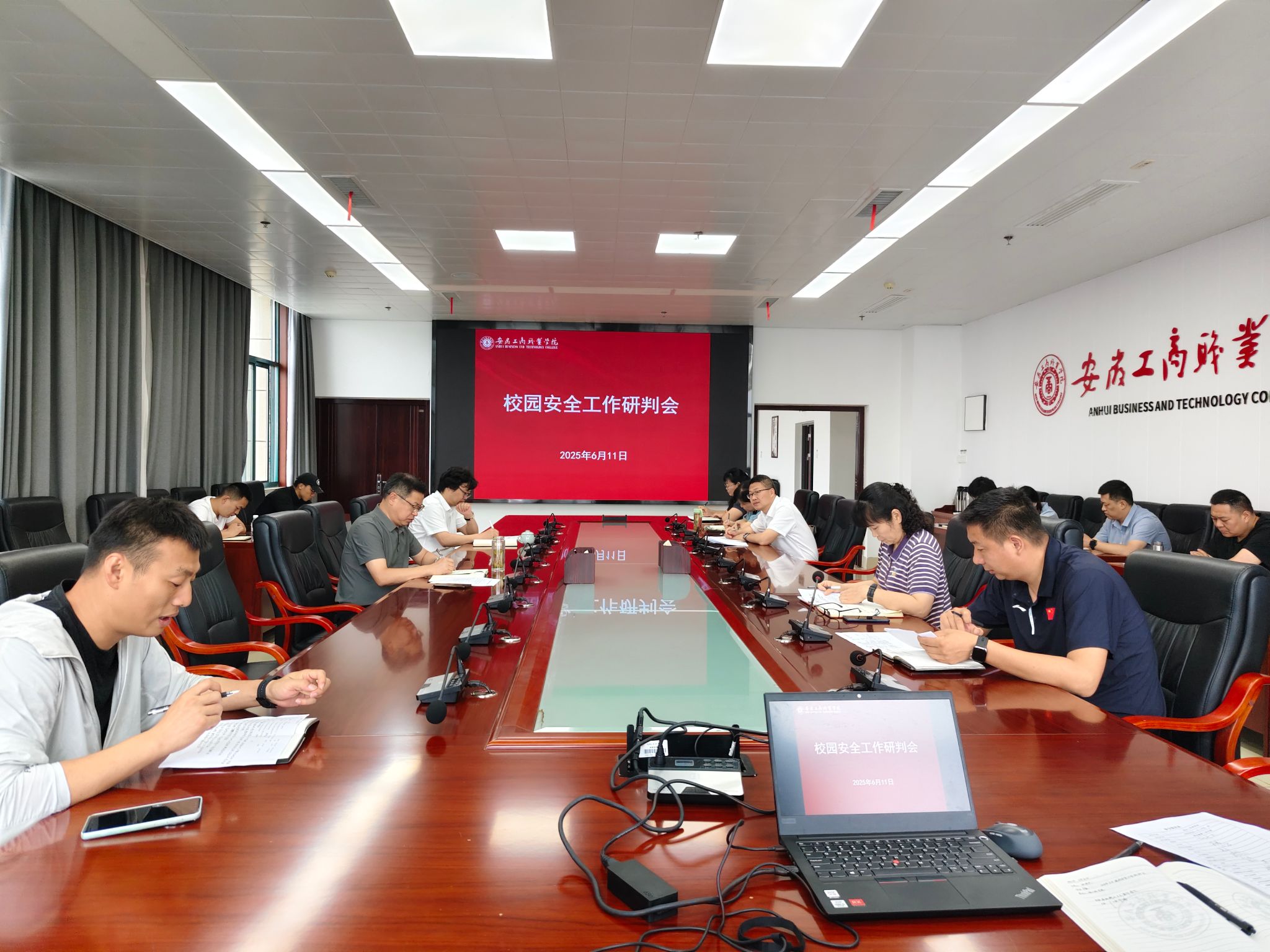 为切实保障师生安全,维护校园和谐稳定,2025年6月11日上午,学校在综合楼第三会议室召开校园安全工作研判会议。相关职能部门负责人、各二级学院党政负责人参加会议,会议由校党委委员、副校长胡捍东主持。