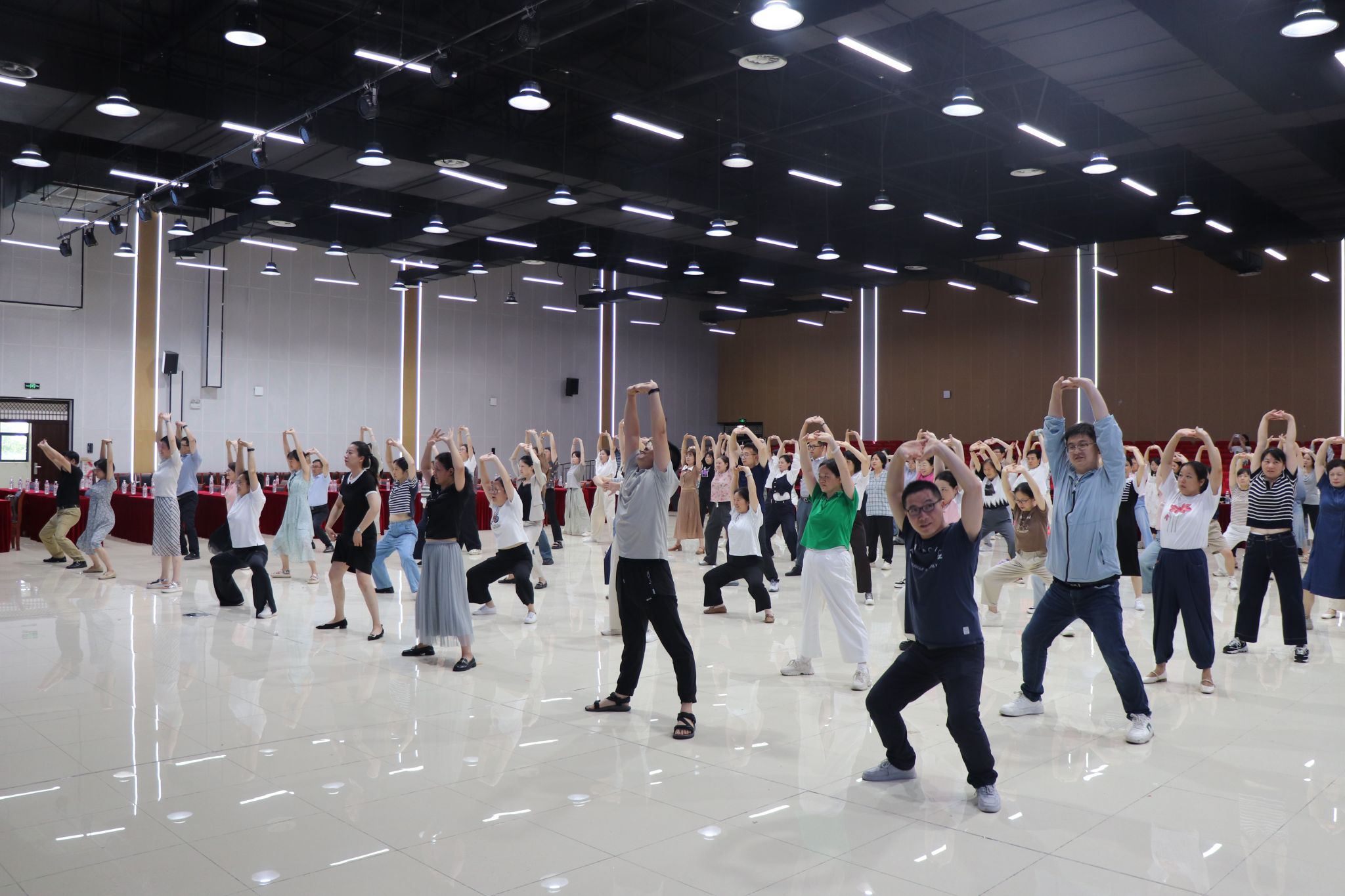 教职工健身协会根据广大会员的身体素质,结合日常工作规律开展了以“律动校园‘健’证美好”为主题的健身活动。活动现场,在领操老师的示范下,全体会员共同学习了具有舒筋活络、调理气血等功效的六式养生操,通过“消失的矿泉水”趣味游戏把运动锻炼趣味化,生动化,强身健体的同时提高了健康意识。