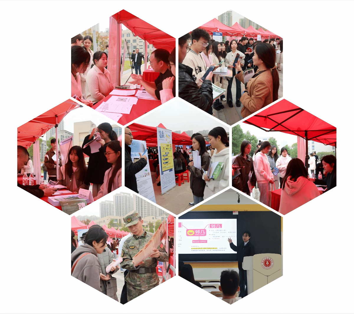 供需见面会现场还设置了应征入伍政策咨询台、职业指导大师进校园咨询台、企业专场讲解,将职业发展与就业指导课程延伸至见面会现场,为毕业生顺利求职精准助力。现场同步开展网络直播带岗活动,借助直播,让无法到场的求职者通过网络平台了解招聘岗位信息,并与企业互动交流、在线投递简历。各学院党总支书记、副书记及毕业班辅导员亲临现场,为毕业生提供专业咨询,积极对接用人单位,协助推荐毕业生,同时探索人才培养与就业合作的新途径。