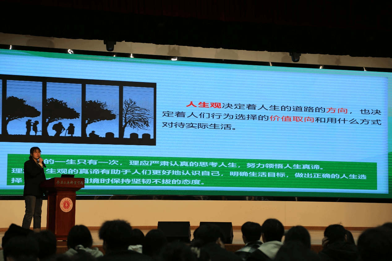 接着,会计学院辅导员马路晴老师带来《树立正确的人生观》。她以通俗易懂的语言和鲜活的案例,帮助学生们理解如何以正确的人生观点亮人生之路。