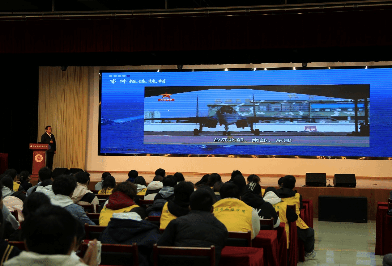 最后,旅游健康学院的张亚运老师围绕《坚持“一国两制”和推进祖国统一》这一主题,深入浅出地讲解了台湾回归的重要性和围台军演的意义与影响,深化了学生的家国情怀与民族团结意识。