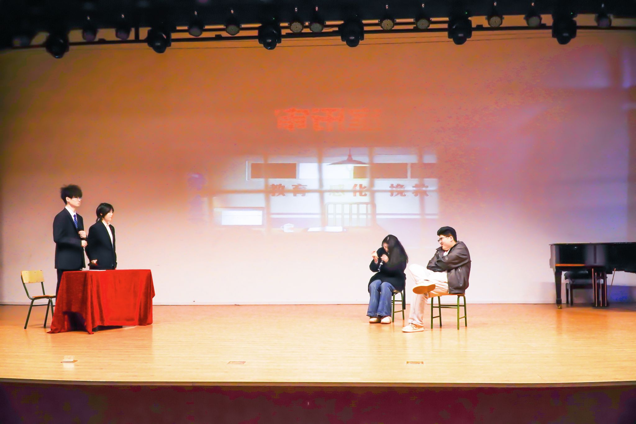 此外,情景剧《以法律之名》通过生动的故事情节,让同学们在欢笑中学习法律知识,增强共同维护和谐校园的意识。舞蹈《我的纸飞机》、二胡《青花瓷》、相声《当兵的变化》、朗诵《心光照梦远途》等节目也各具特色,精彩纷呈。最后,在音协的大合唱《奔跑》中,本期道德讲堂圆满落幕。