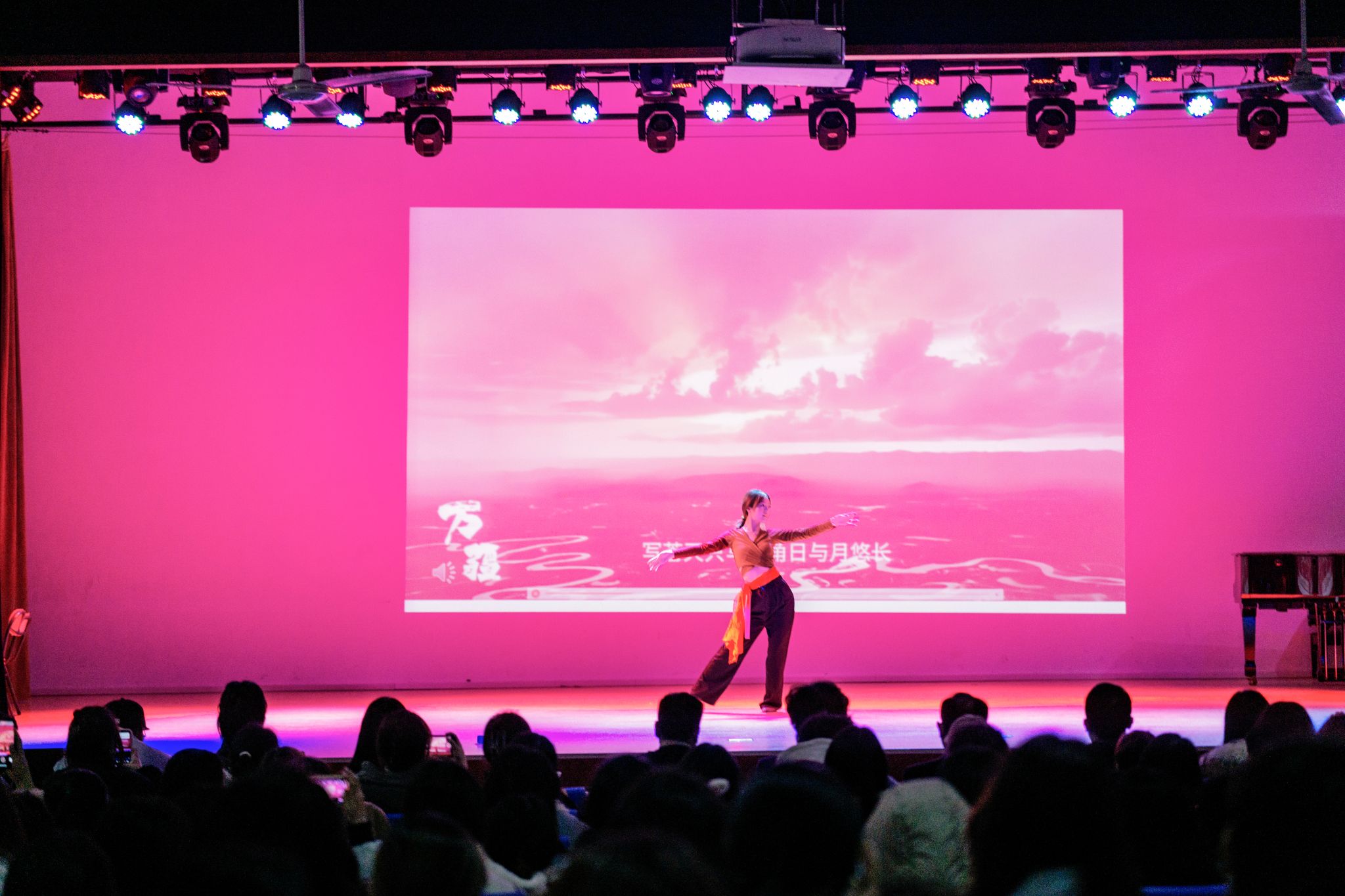 当《我爱你中国》的音乐响起,全场气氛达到了高潮。同学们用歌声表达了对祖国的无限深情和满腔炽热的爱国主义情感。而舞蹈《万疆》则以红衣翩翩、余音缱绻的形式,流露出浓浓的爱国情怀,如日出东方般充满力量和希望。