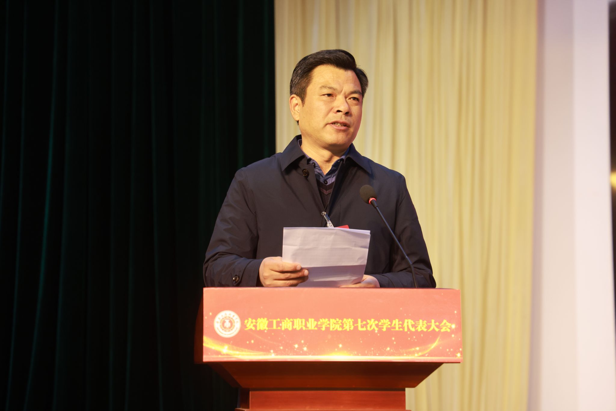 校学生会执行主席刘志强在第七次学代会第一次全体会议上代表第二十届学生委员会做了题为《牢记服务宗旨,勇于自我革命 让青春在为中国式现代化挺膺担当中焕发绚丽光彩》的工作报告。