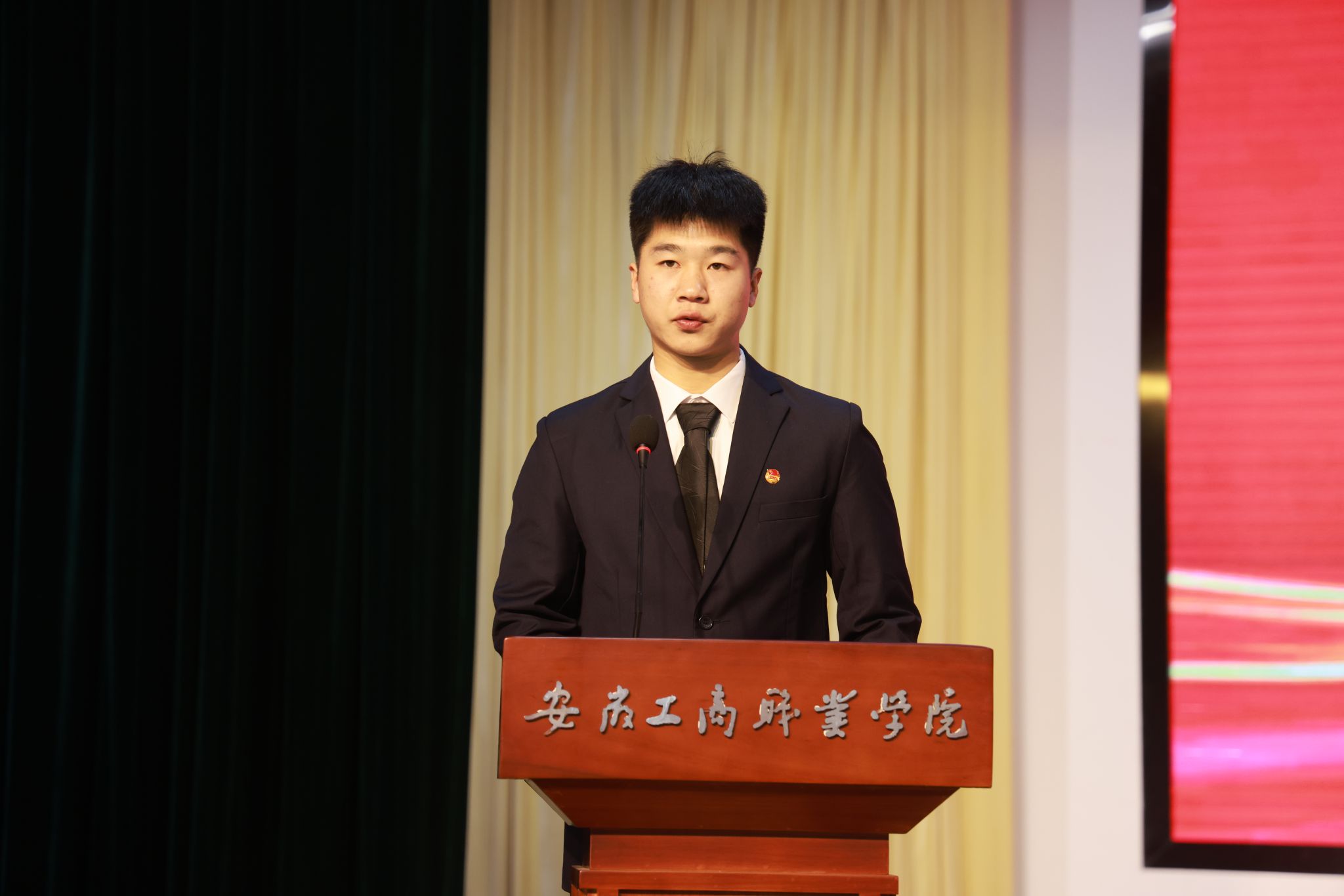 童乐简要介绍了本期“青马工程”培训班的基本情况和培训内容,对参培学员提出纪律要求和学习要求。陈行为学员代表孙业泉授旗。校学生会执行主席韩佳辉作为学员代表发言,他表示作为新时代青马学员及学生骨干,要争做一名优秀的新时代青年马克思主义者,坚定理想、自信自励;立鸿鹄志、做奋斗者;勤奋学习、刻苦钻研,走技能成才、技能报国之路,用青春的激情奏响“清澈的爱、只为中国”的时代强音,以实际行动践行“请党放心,强国有我”的铮铮誓言。校广播站站长王若楠带领全体学员宣誓。