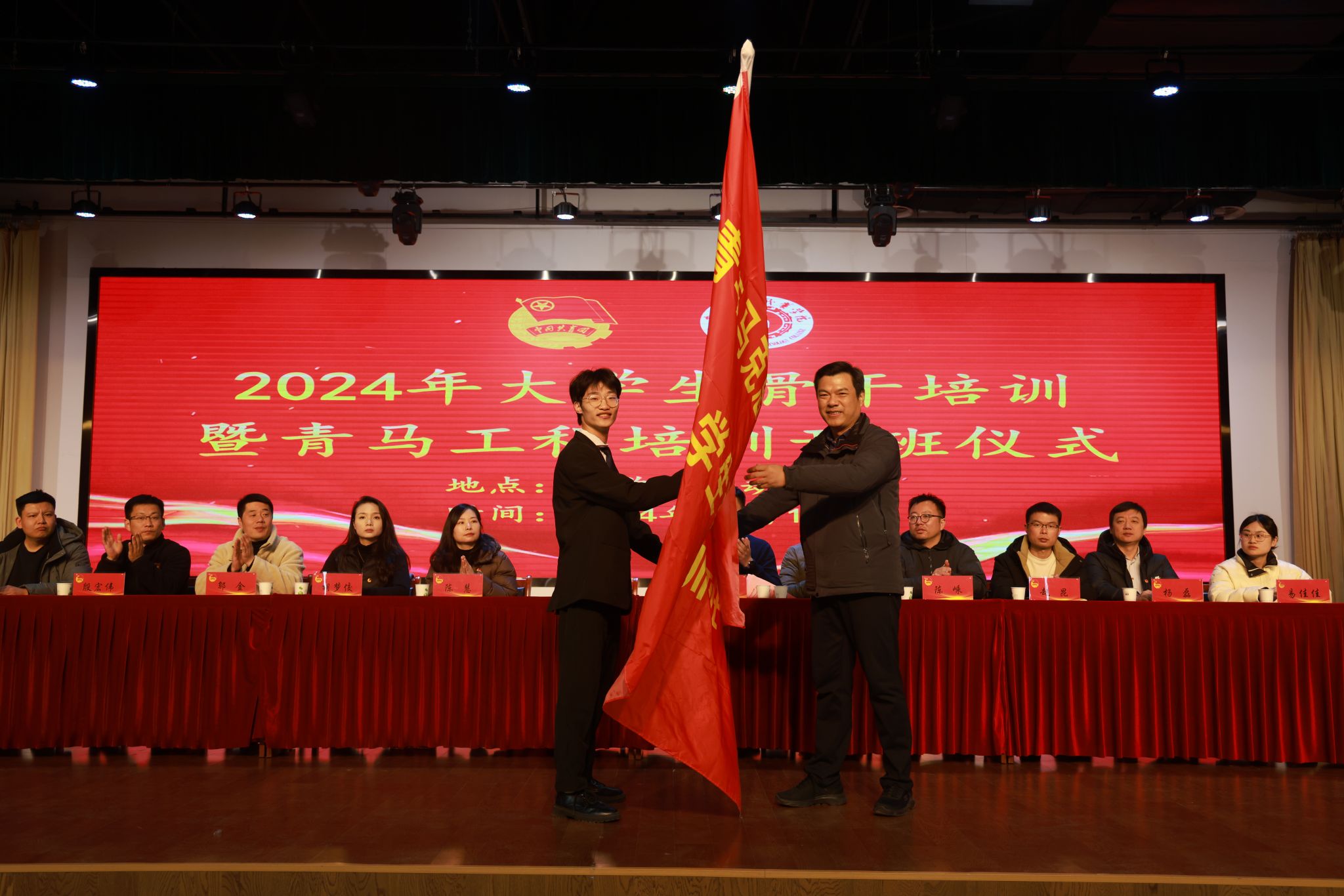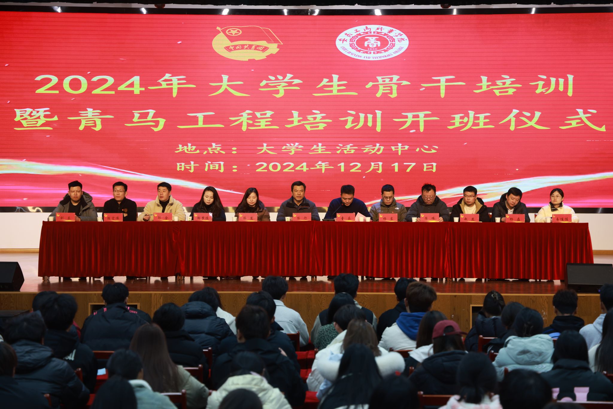2024年12月17日,学校2024年大学生骨干培训班暨“青马工程”培训班在大学生活动中心开班。校党委副书记陈行出席本次活动,各二级学院团总支书记、校团委老师,24级各班班长、团支部书记,各级学生会组织主要学生干部、校级社团负责人,共计300多人参加开班仪式。本次开班仪式由校团委副书记童乐主持。