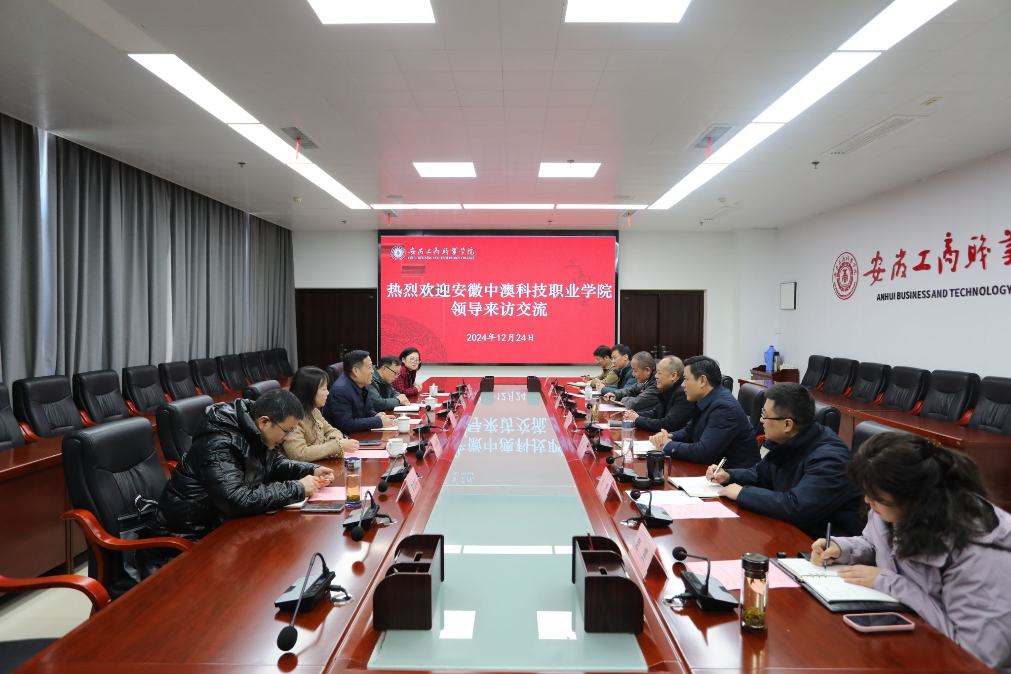 12月24日上午,安徽中澳科技职业学院党委书记杨恒宇一行来必赢线路检测3003调研交流。校党委书记齐建平、党委副书记陈行在综合楼第三会议室进行了热情接待,办公室、组织人事处、教务处、信息工程学院等部门负责人参加了接待。