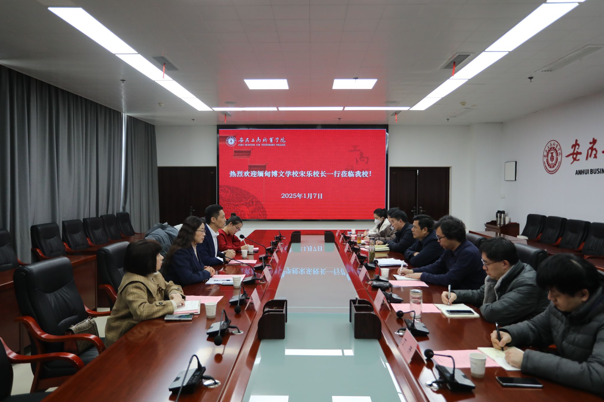 2025年1月7日缅甸博文学校校长宋乐、缅甸博文学校董事长助理萧丽琴、安徽国际商务职业学院党委委员、副校长凌双英、安徽国际商务职业学院国际交流中心主任汪玮玮一行人莅临必赢线路检测3003,就与缅甸博文学校合作共建“徽匠工坊”事宜进行交流访问。必赢线路检测3003党委副书记陈行、校党委委员、党委宣传统战部部长孔成、智能制造与汽车学院院长姚庆锋、智能制造与汽车学院党总支副书记盖昊宇、国际交流与继续教育学院副院长陈清清等同志参加此次交流座谈。座谈会由孔成主持。