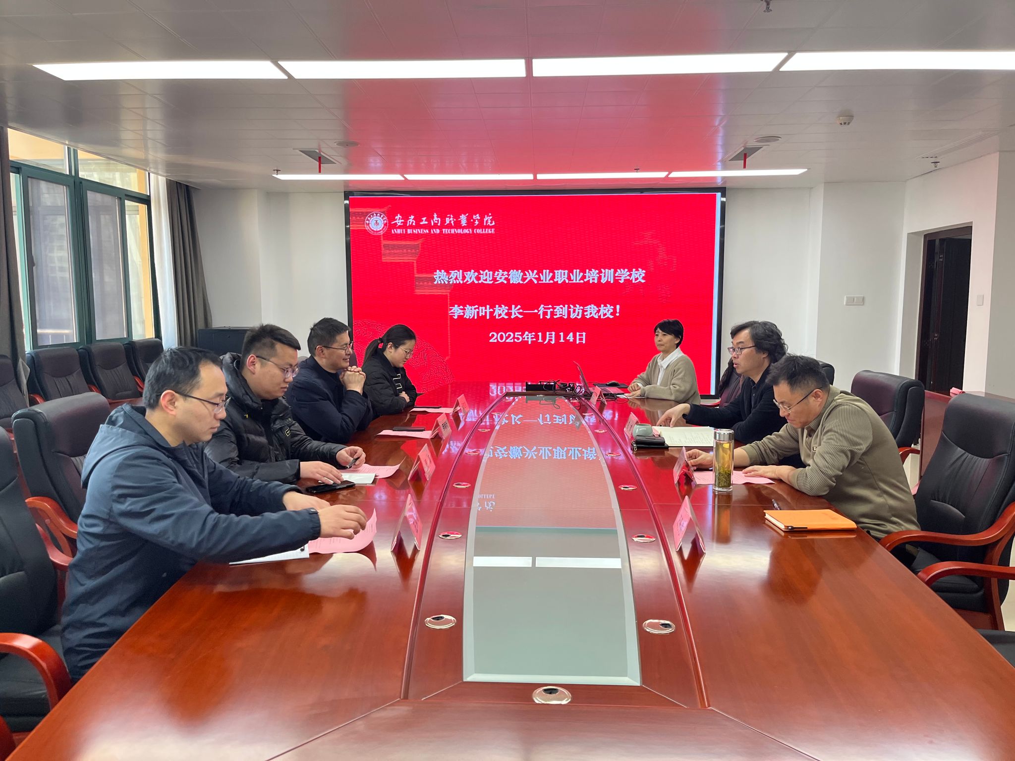 1月14日,合肥兴业教育集团校长李新叶、副校长周康、左从瑞、阮红月等一行到访必赢线路检测3003。李新叶一行实地首先参观了必赢线路检测3003的实习宾馆、茶艺与插花实训室、智能网联汽车工程实训中心、智慧思政教学实践基地、智能财税实训中心、人工智能体验中心等实训场地。