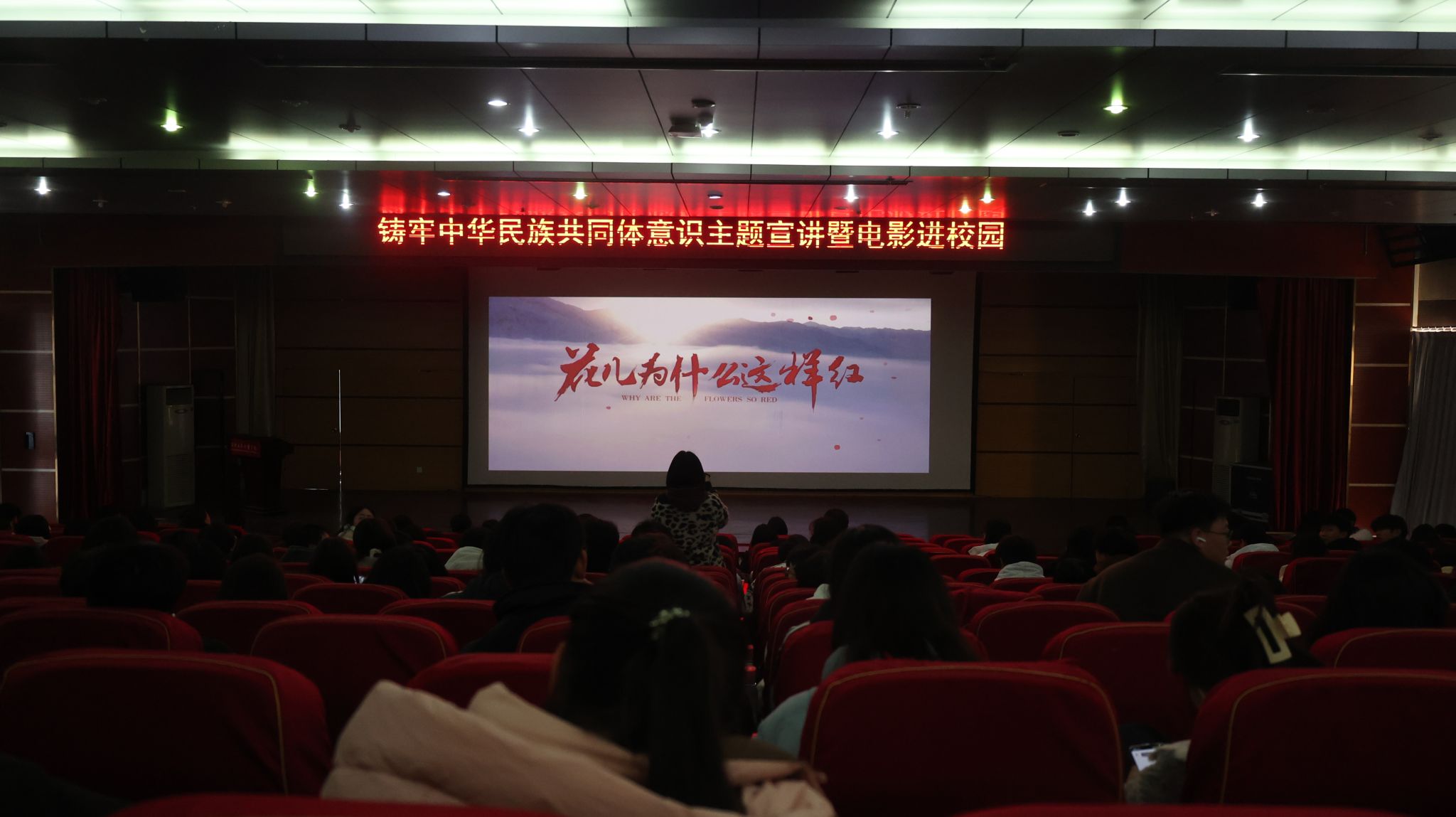 活动伊始,特邀龚存兵以“铸牢中华民族共同体意识”为主题进行宣讲。讲座深入浅出,从历史到现实,从理论到实践,强调华夏民族不可分裂,增进共同性、尊重和包容差异性,让师生们对中华民族共同体意识有了更加深刻的理解。随后,全体师生共同观看影片《花儿为什么这样红》,影片以“时代楷模”拉齐尼·巴依卡的真实事迹为蓝本,展现了他一家三代70年无怨无悔守边护国的爱国奉献精神,让师生们深受感动。