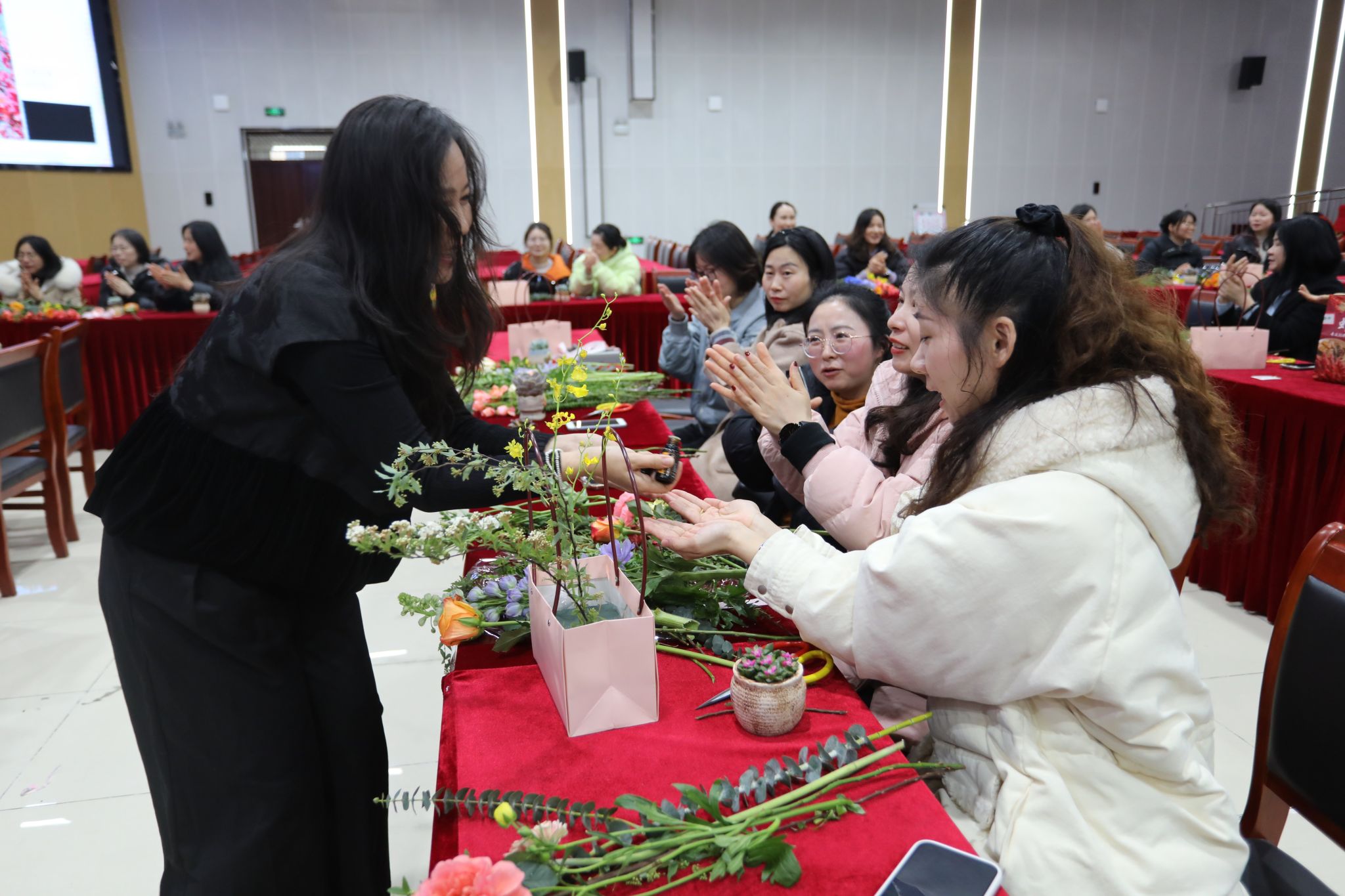 此次活动不仅让女性职工学习了插花技艺,陶冶了情操,更让大家在繁忙的工作之余放松身心,感受生活的美好。老师们纷纷表示,这次活动太棒了,感觉特别开心,度过了一个温馨浪漫的节日,对工作充满了新的热情,相信在今后的工作中,一定能绽放巾帼风采。(撰稿:江梦尧 审稿:朱炜 赵艳)