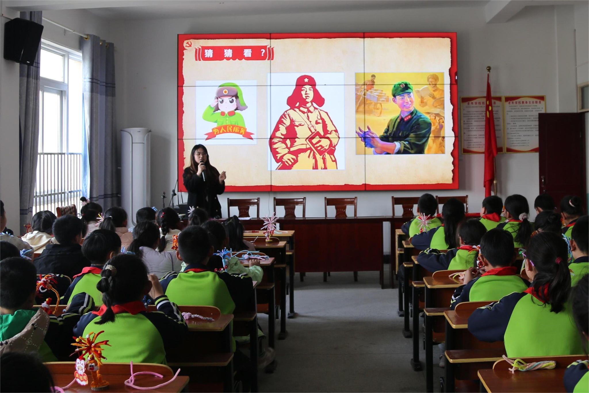“雷锋叔叔出差一千里,好事做了一火车,他的故事为什么能温暖一代代人?”在春光小学的课堂上,刘乐老师以动画短片《雷锋的故事》为引,通过“雷锋日记”“当代‘小雷锋’事迹”等环节,用童言童语向孩子们讲述雷锋精神的时代内涵。易佳佳老师则结合乡村学生生活实际,设计“我是小小志愿者”情景问答,引导界址小学的孩子们分享帮助同学、爱护环境的暖心故事,课堂气氛热烈。树林小学教室内,陈慧老师带领学生齐唱《学习雷锋好榜样》,嘹亮的歌声中,孩子们用画笔描绘心中的“雷锋模样”,写下“争做新时代小雷锋”的承诺。