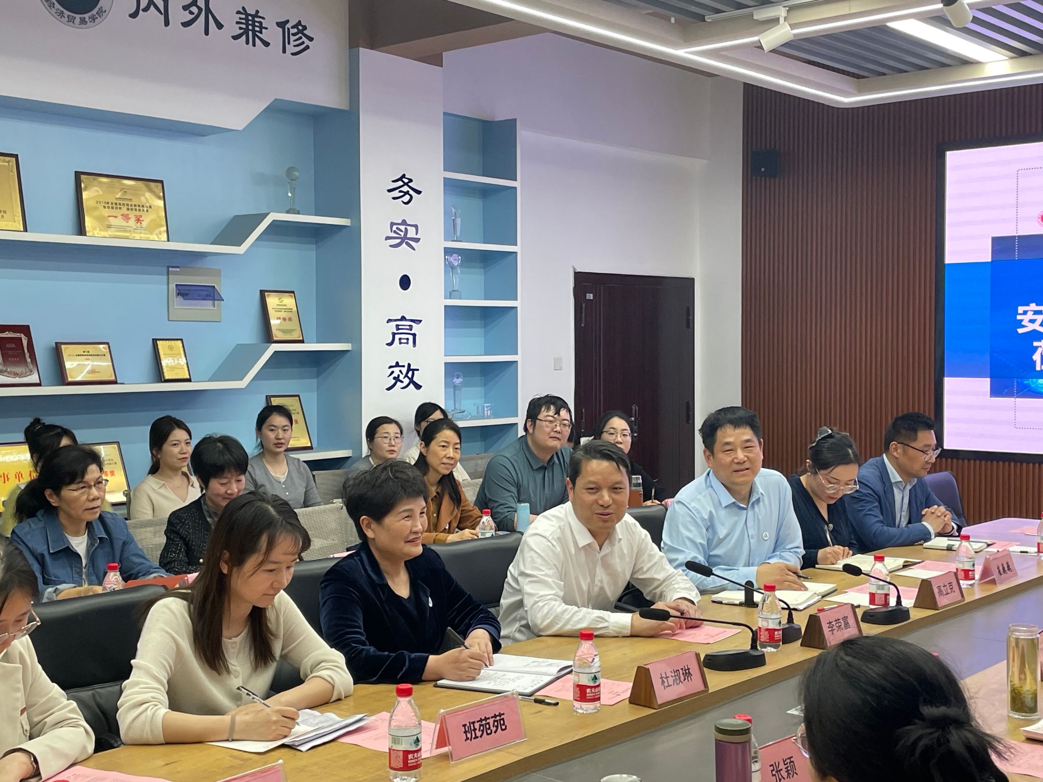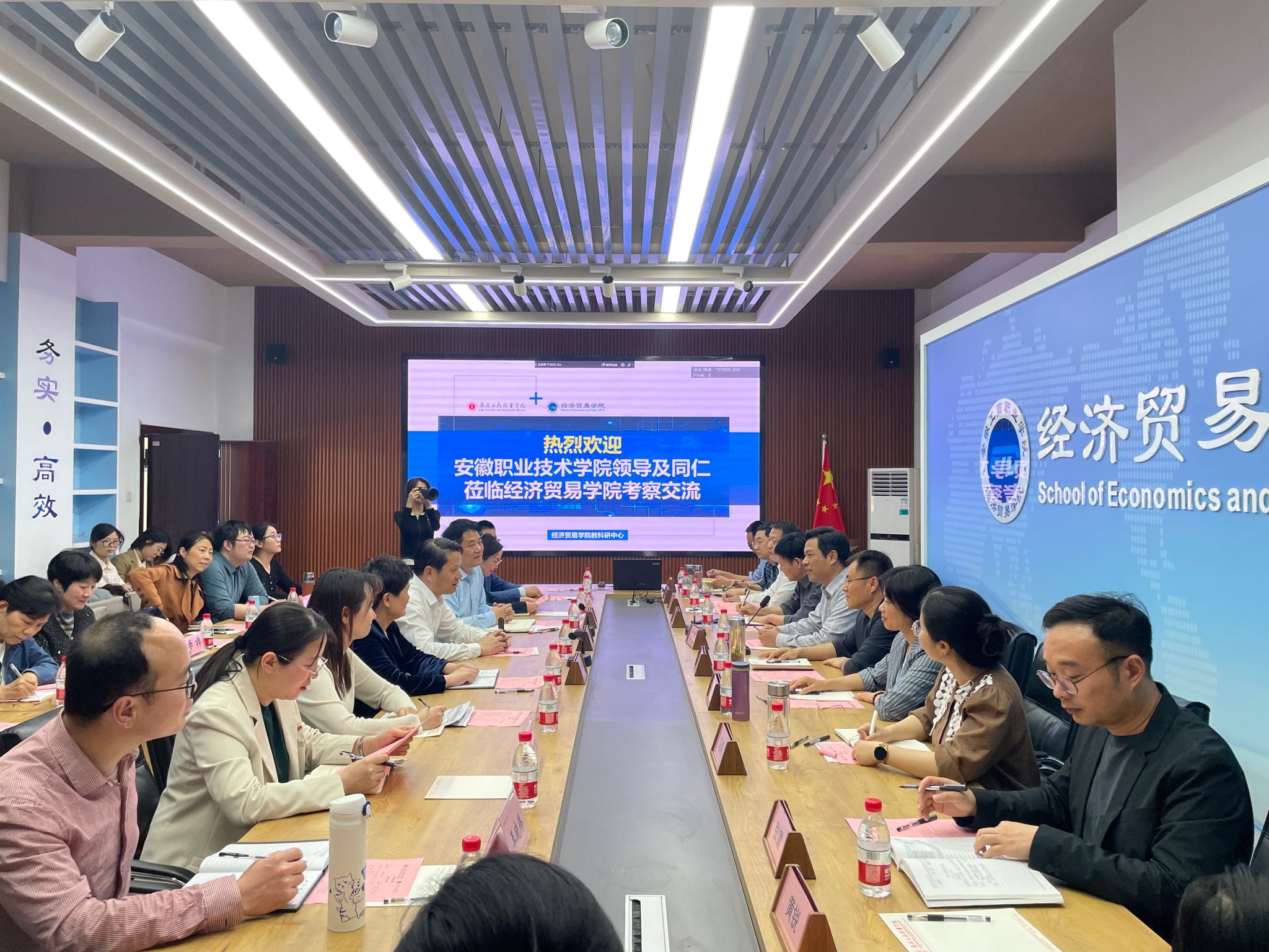3月26日下午,安徽职业技术学院党委委员、纪委书记李荣富、现代商务学院党总支书记高立克、现代商务学院副院长杜淑琳率领学院教研室主任、专业负责人及骨干教师等33人,到必赢线路检测3003经济贸易学院、管理学院开展考察交流。座谈交流会在经济贸易学院教科研中心举行。必赢线路检测3003党委委员、党委副书记陈行、经济贸易学院党总支书记边昊、管理学院党总支书记曹大友及必赢线路检测3003两个学院其他相关专业负责人、教研室主任参加了座谈交流。会议由经济贸易学院院长张颖主持。