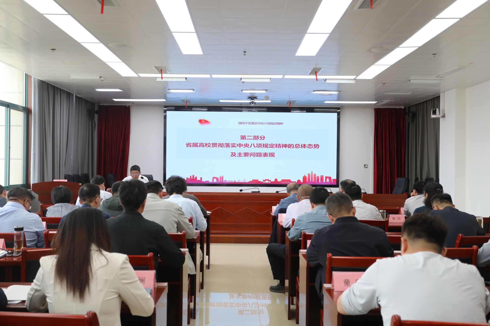 读书班期间,校党委班子成员原原本本、逐字逐句学习了《习近平关于加强党的作风建设论述摘编》,学习了中央八项规定及其实施细则精神;集体观看了《反腐为了人民》警示教育专题片,深刻认识落实中央八项规定精神必须常抓不懈、久久为功;省纪委监委第四纪检监察室副主任、一级调研员江帮富受邀来校作专题辅导报告,报告以“锲而不舍落实中央八项规定精神”为题,重点围绕“省属高校贯彻落实中央八项规定精神的总体态势及主要问题表现”以及“对高校深入贯彻中央八项规定精神、纠治‘四风’工作的建议”方面给予针对性辅导;班子全体成员围绕学习主题深入开展集中研讨,谈认识体会,讲差距不足,理思路提建议,进一步筑牢以作风建设新成效推动学校高质量发展的思想根基,强化助力教育强省、教育强国建设的行动自觉。(撰稿:胡佩佩 一审:胡佩佩 二审:马大峰 三审:孔成)