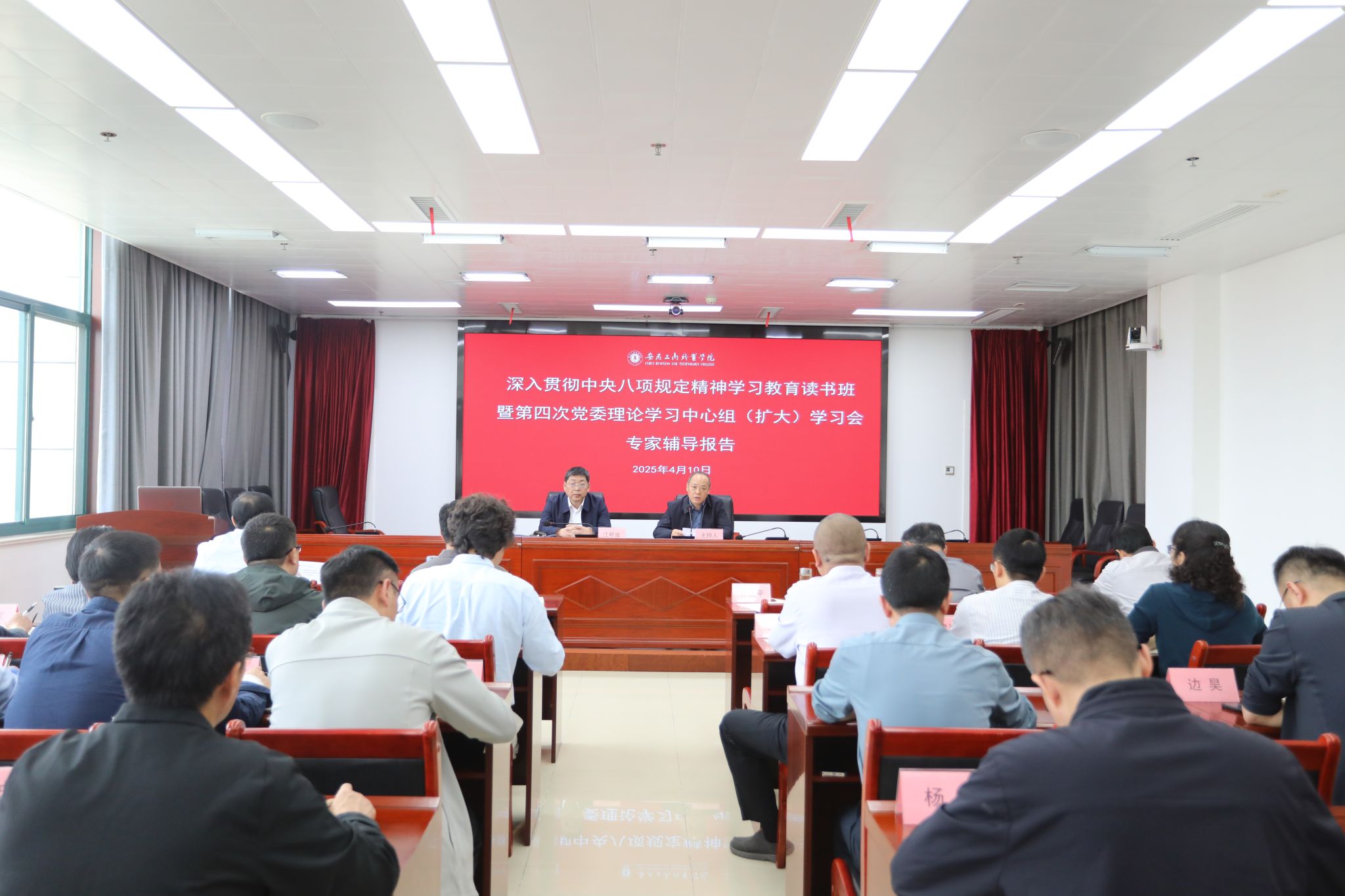4月9日至11日,必赢线路检测3003党委举办深入贯彻中央八项规定精神学习教育读书班,党委领导班子成员全程参加学习活动,其中观看警示教育专题片、参加专家辅导报告会扩大到学校全体中层干部。