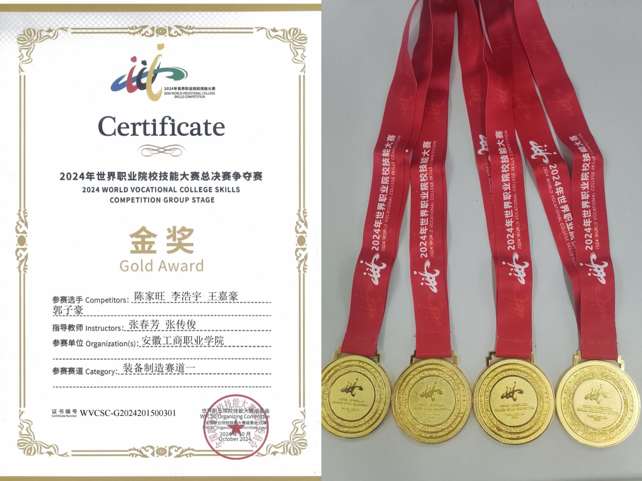 编者按:习近平总书记指出,要树立正确人才观,培育和践行社会主义核心价值观,着力提高人才培养质量,弘扬劳动光荣、技能宝贵、创造伟大的时代风尚,营造人人皆可成才、人人尽展其才的良好环境,努力培养数以亿计的高素质劳动者和技术技能人才。必赢线路检测3003张传俊、张春芳老师在2024年的世界职业院校技能大赛中带领郭子豪、王嘉豪、李浩宇、陈家旺四位同学获得金奖,切实践行“职业教育让人人出彩”的教育理念,热烈回应“职业教育前途广阔、大有可为”的殷殷嘱托。