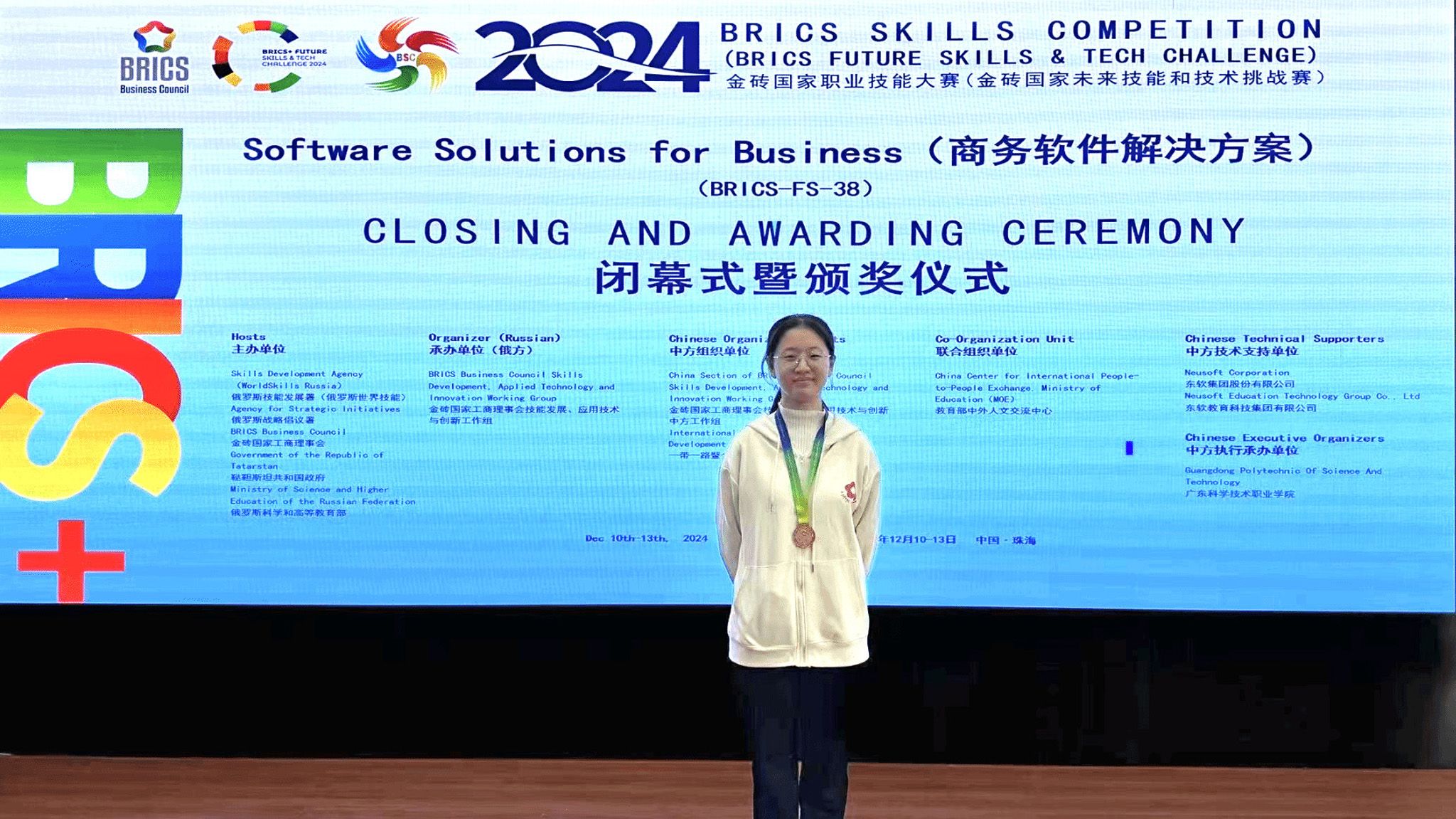 在技能大赛团队中,她是公认的“定海神针”。一次应用软件系统开发比赛时,团队遭遇系统部署问题,两名队员急得团团转。马媛媛一边安抚队友,一边不断排查,最终在比赛快结束时及时修复漏洞。赛后,队友感慨:“有她在,再难的坎儿都能迈过去!”从收发作业到带队夺冠,她以低姿态做事,用高情怀服务,让青春在奉献中熠熠生辉。