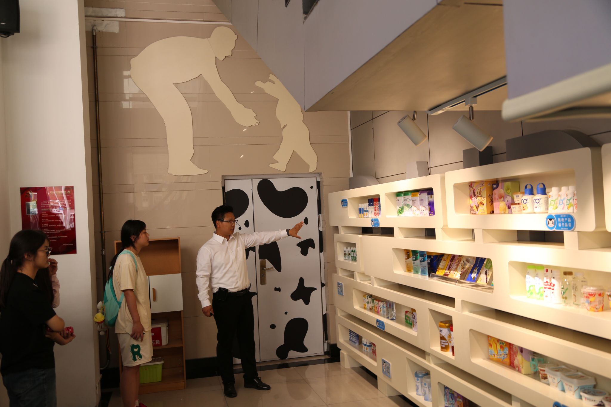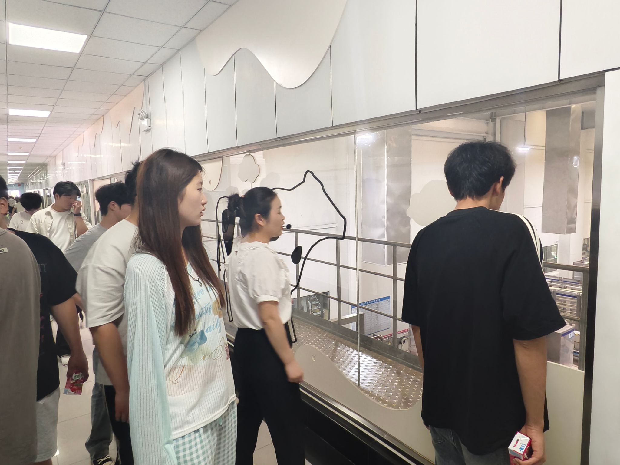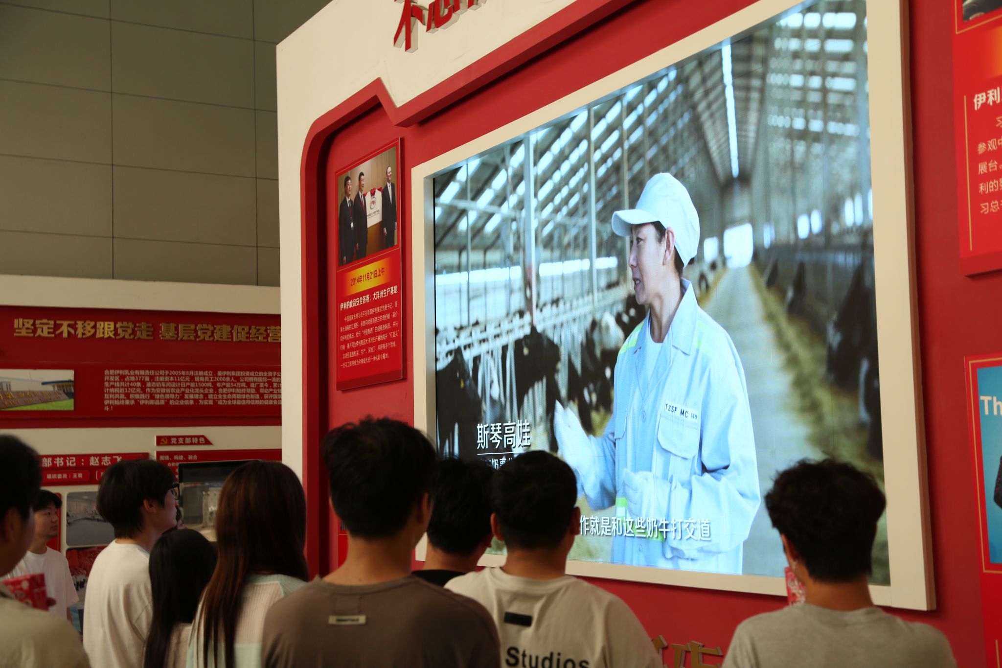 步入全球领先的液态奶透明工厂,师生们开启了从“一棵草到一杯奶”的匠心之旅。在讲解员的引导下,师生们沿着参观通道,见证了乳制品生产的全流程。从原奶接收、杀菌灌装到包装运输,全自动化的生产线高效运转,这种“不见一滴奶”的智能化生产模式,让学生们惊叹于现代工业的精密与高效。讲解员介绍,伊利通过数字化系统实现全产业链追溯,“从奶源到成品,每一包产品均可溯源至具体牧场甚至奶牛”。在质检实验室,学生们还了解到伊利对产品质量的极致追求。讲解员强调:“1%的不合格对消费者就是100%的风险,我们必须做到零缺陷。”这种严谨态度深深触动了在场师生,也让他们认识到劳动教育中“责任”与“匠心”的重要性。此外,学生们亲手触摸生产原料、参与乳品知识问答,并品尝了伊利酸奶和冷饮等。这种沉浸式学习方式,将理论与实践结合,点燃了学生对食品科学与技术创新的兴趣。