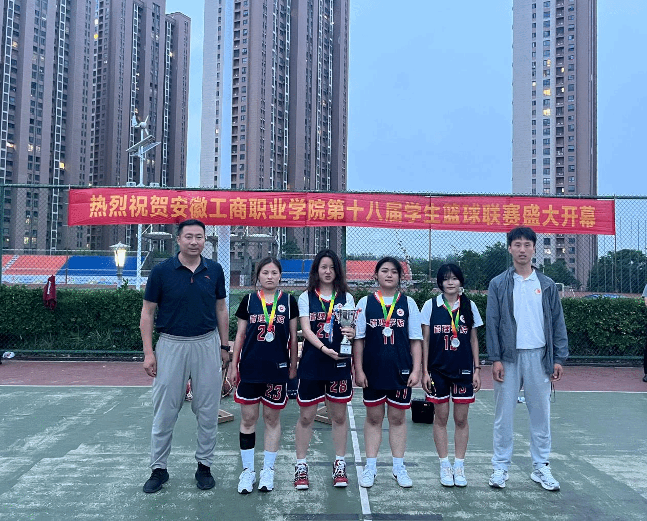 此次篮球联赛的成功举办,不仅为同学们提供了切磋技艺、学习交流的机会,也是为更好满足学生全面发展和个性化需求,促进身心发展,提升运动素养和健康行为,培养创新精神和实践能力搭建实战平台,让当代大学生既有仰望星空,又有脚踏实地的力量。(撰稿:张佳男 一审:张佳男 二审:何丽 三审:刘守旺)