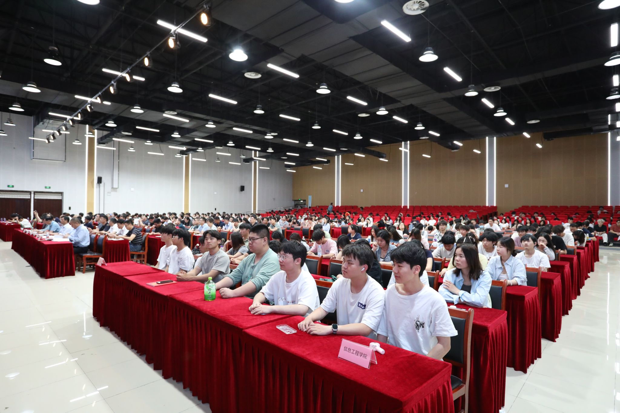 5月14日下午,在全国职业教育活动周良好氛围下,校党委第六次理论学习中心组学习(扩大)会暨第五十二期工商大讲堂在学校大学生活动中心举行。中国科学技术大学二级教授、博士生导师周荣庭应邀作题为“生成式人工智能发展前沿与DeepSeek实践应用”专题辅导报告。校党委副书记陈行主持会议,校领导、全校中层干部、各二级学院师生代表500余人参加本次讲座。