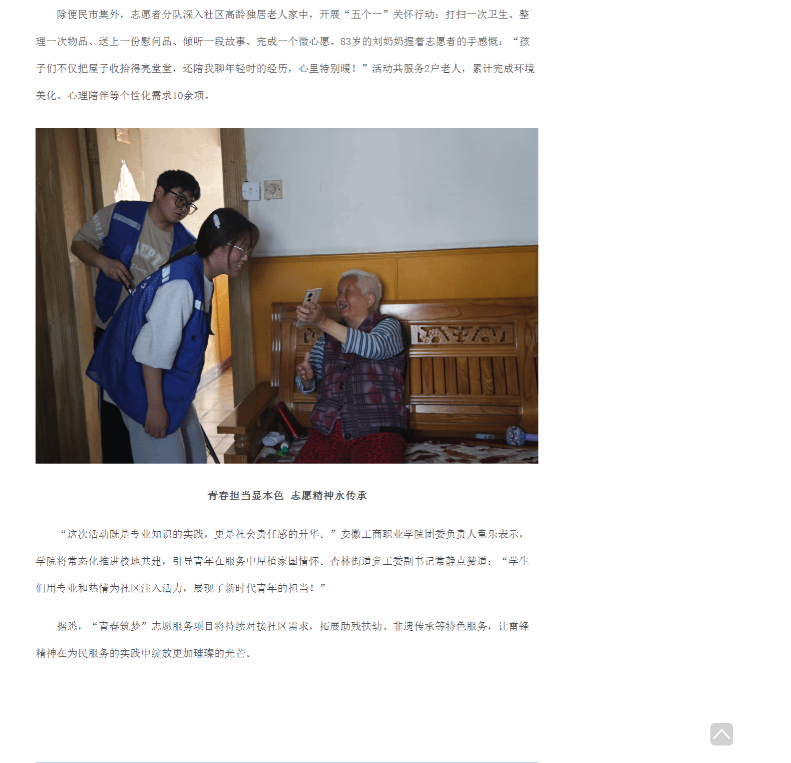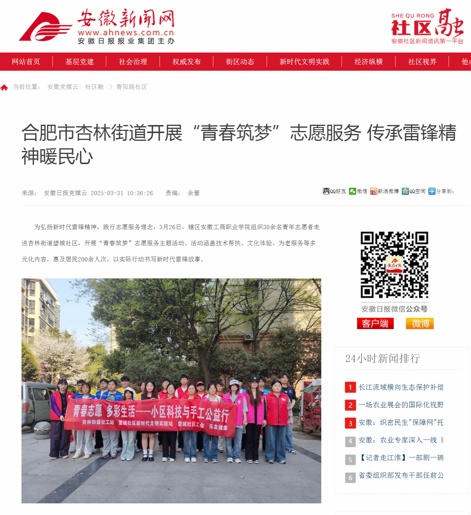 原文链接:【安徽新闻网】 报道:合肥市杏林街道开展“青春筑梦”志愿服务 传承雷锋精神暖民心