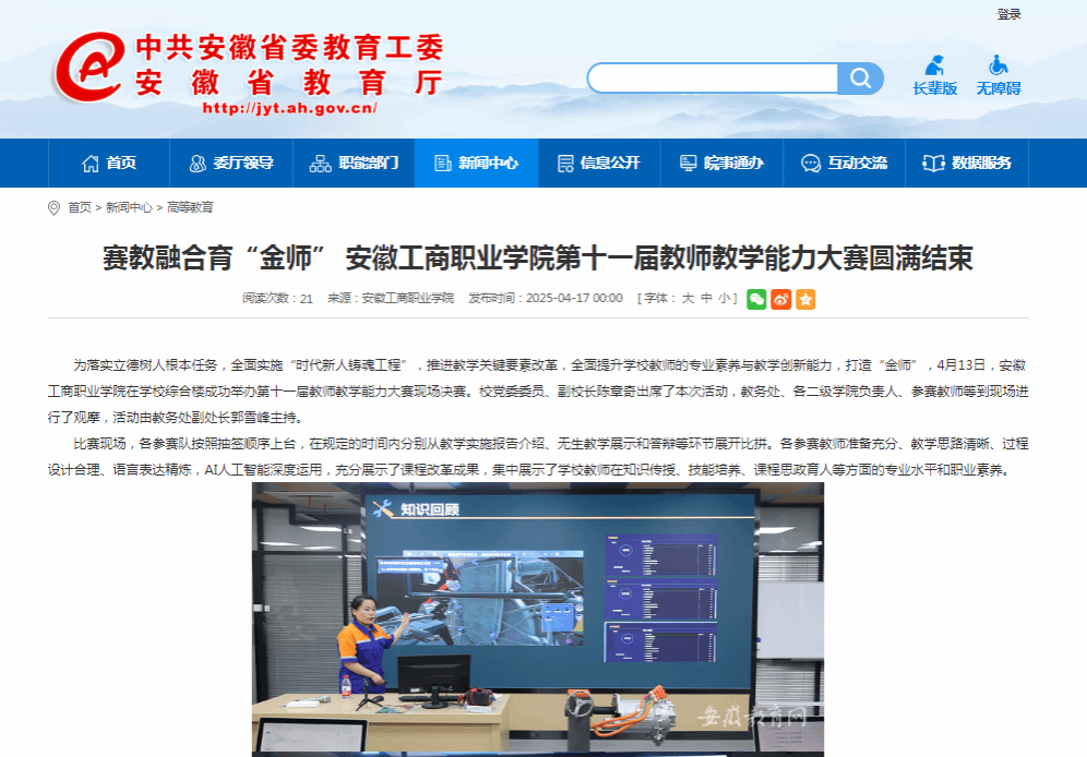 原文链接:【安徽教育网】 首页报道:赛教融合育“金师” 必赢线路检测3003第十一届教师教学能力大赛圆满结束