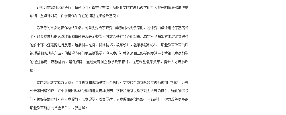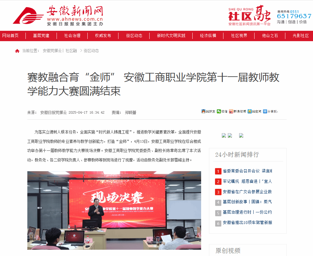 原文链接:【安徽新闻网】报道:赛教融合育“金师” 必赢线路检测3003第十一届教师教学能力大赛圆满结束