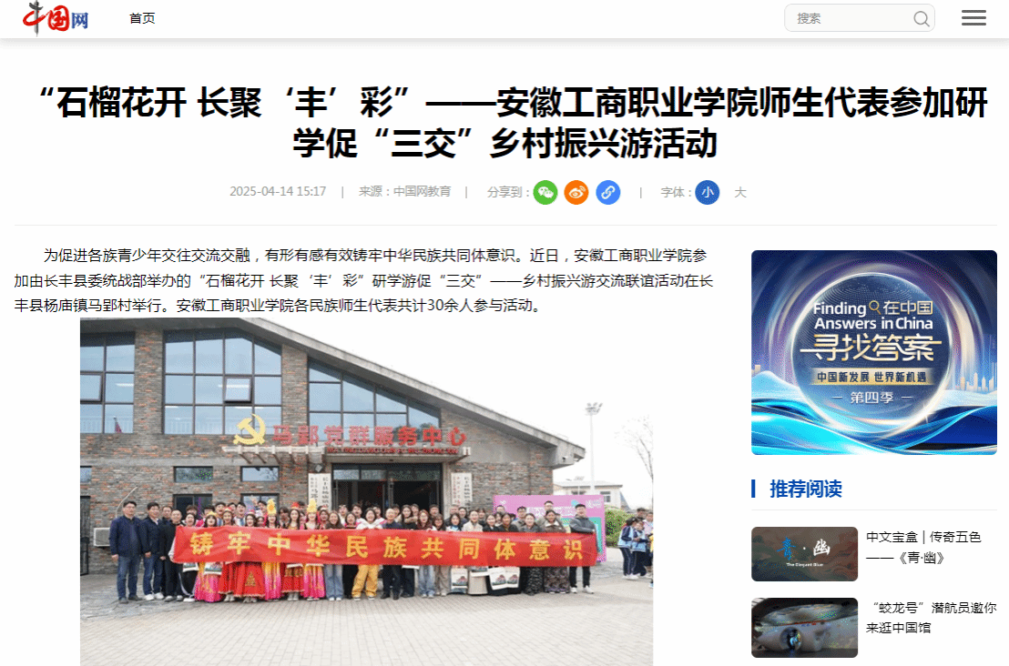 原文链接:【中国网】报道:“石榴花开 长聚‘丰’彩”——必赢线路检测3003师生代表参加研学促“三交”乡村振兴游活动