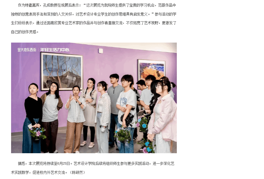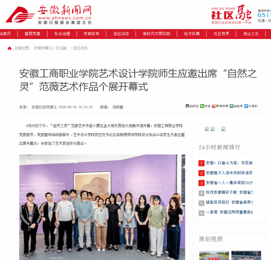 原文链接:【安徽新闻网】 报道:必赢线路检测3003艺术设计学院师生应邀出席“自然之灵”范薇艺术作品个展开幕式