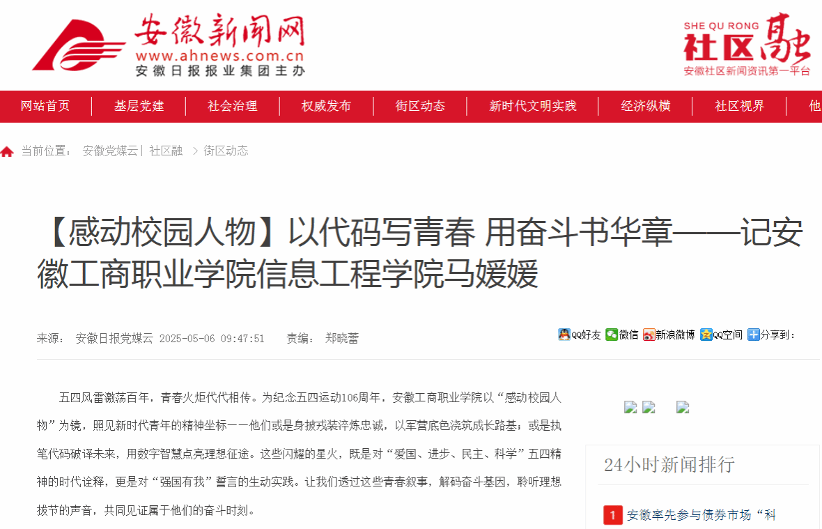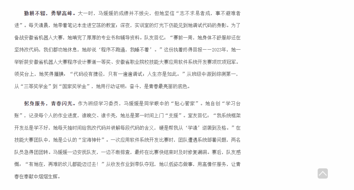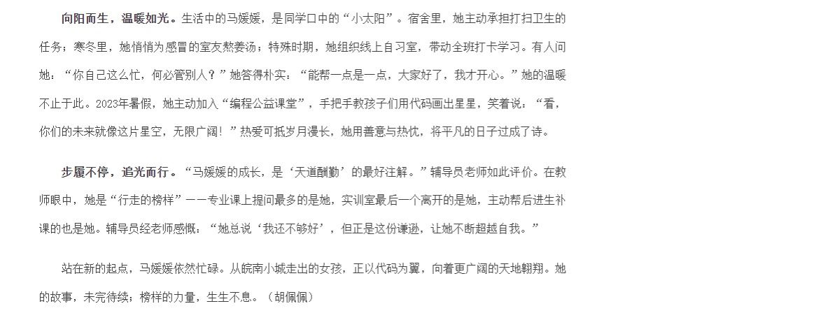 原文链接:【安徽新闻网】报道:【感动校园人物】以代码写青春 用奋斗书华章——记必赢线路检测3003信息工程学院马媛媛