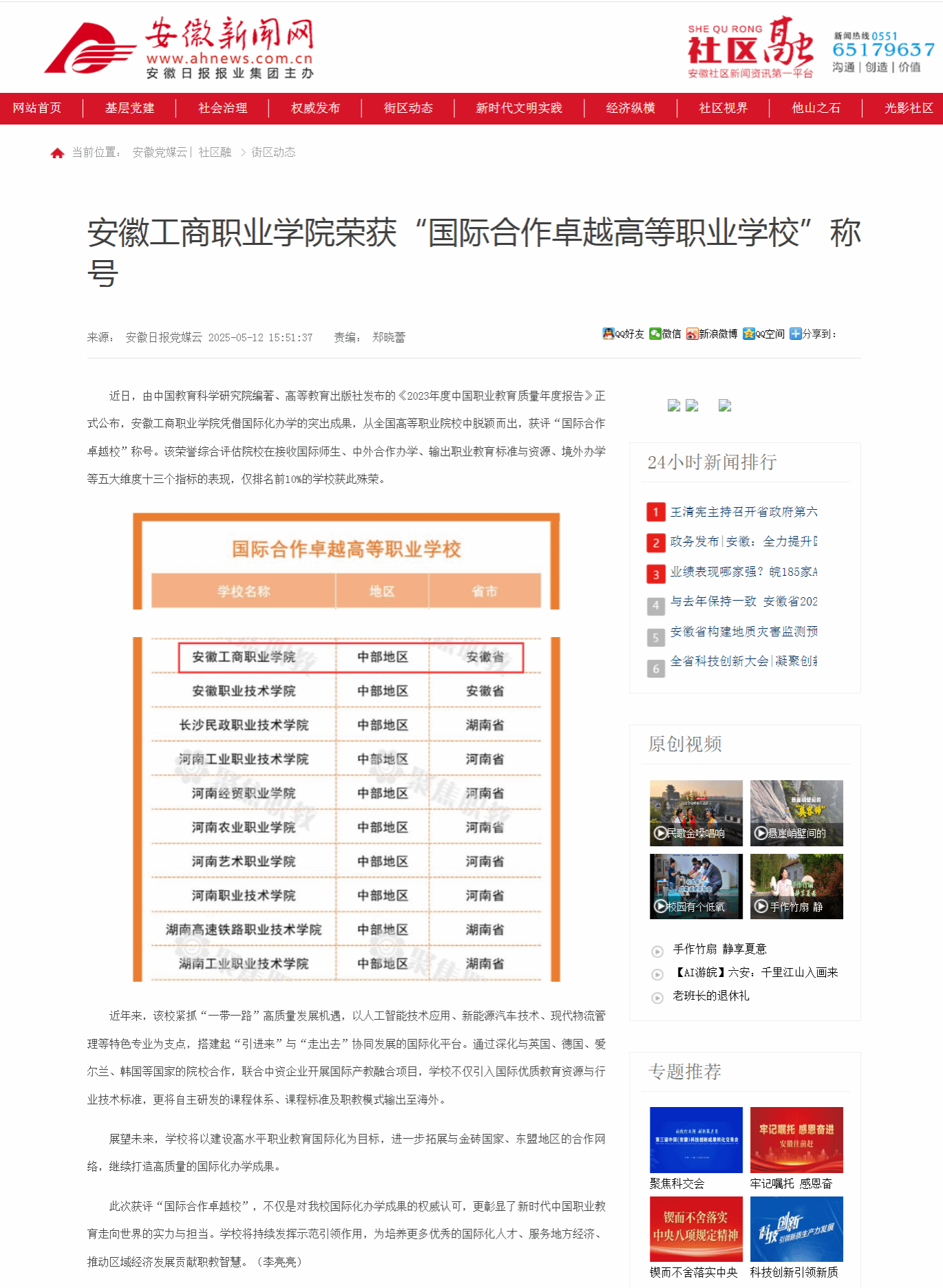 原文链接:【安徽新闻网】报道:必赢线路检测3003荣获“国际合作卓越高等职业学校”称号