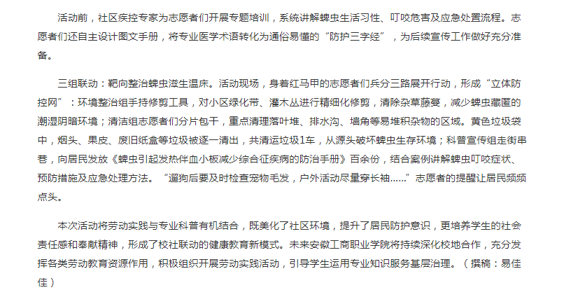 原文链接:【高校之窗】报道:必赢线路检测3003志愿者携手峰宁社区开展“防蜱虫 净环境”主题宣传活动