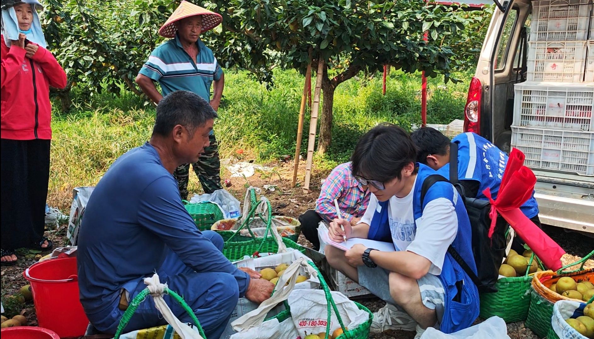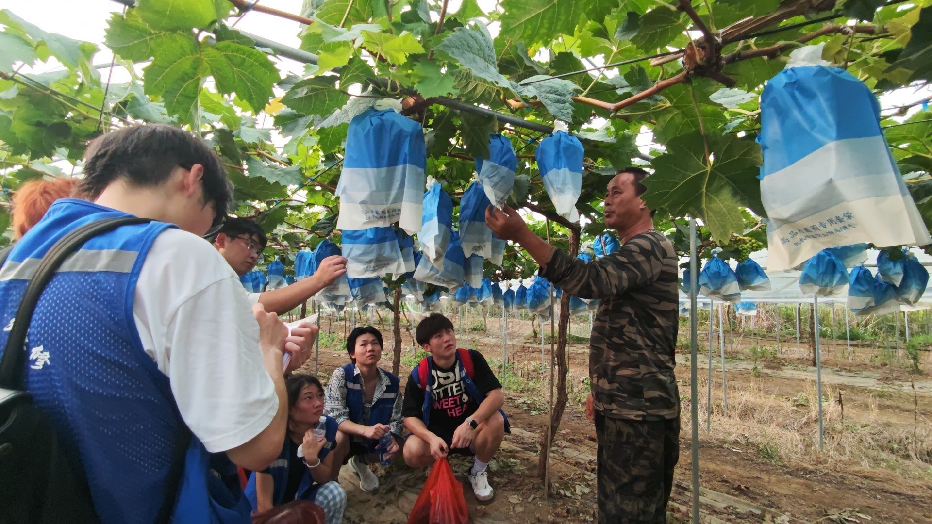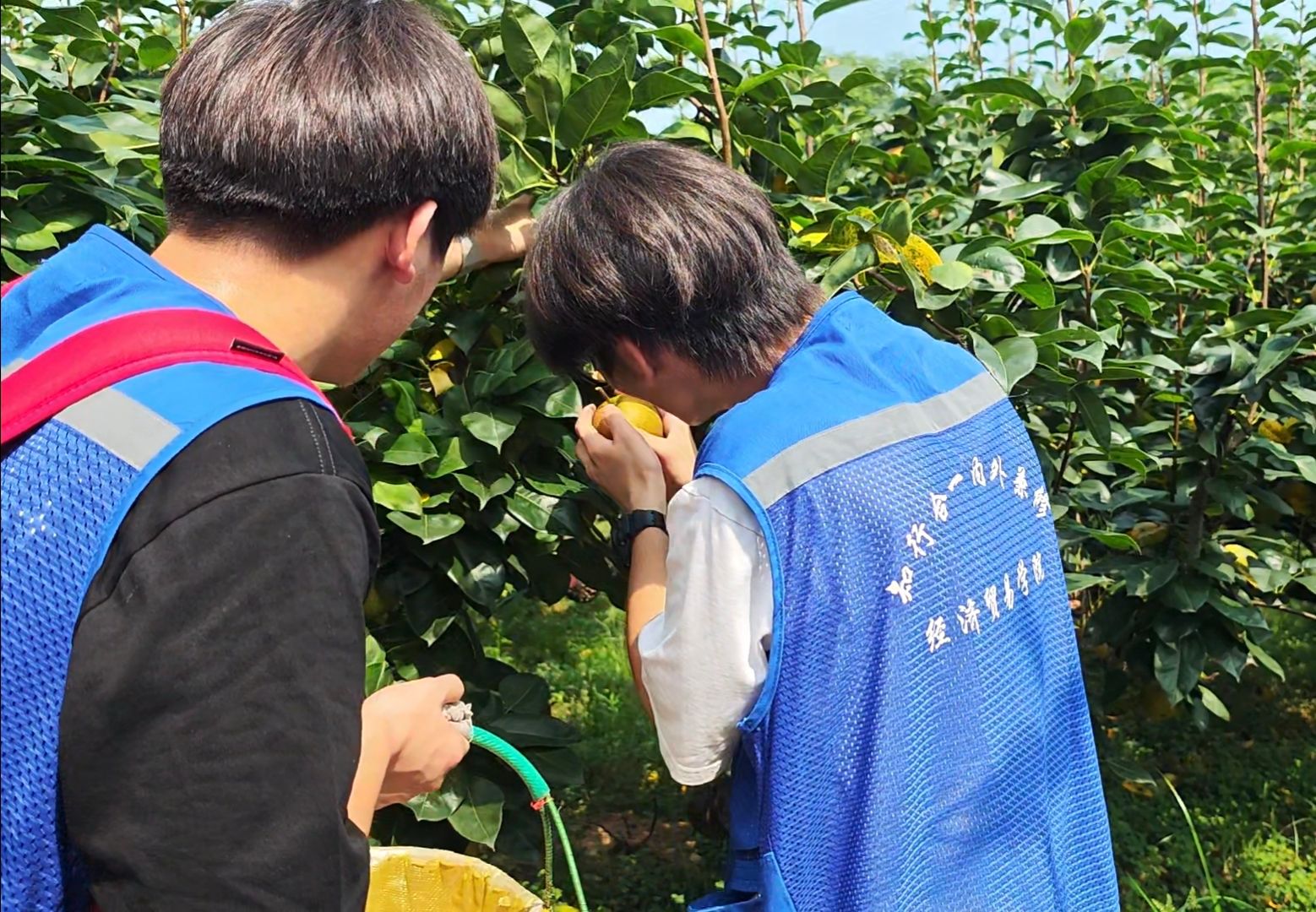 把脉问诊田间事,建言献策助三农。7月18日全天,团队深入2个种植基地,通过实地观测等方式,把脉农村发展:翠冠梨种植基地里,队员们俯身观察土壤墒情,详细记录了12项水肥管理技术要点;阳光玫瑰葡萄园里,师生们与农户共同探讨梳理出5个电商营销的痛点和突破。在“乡村振兴青年说”座谈会上,队员们提出的“云认养+文旅”新模式引发热烈讨论。指导教师邬金指出:“只有在田间地头调研,才能产出有温度的研究成果。”
