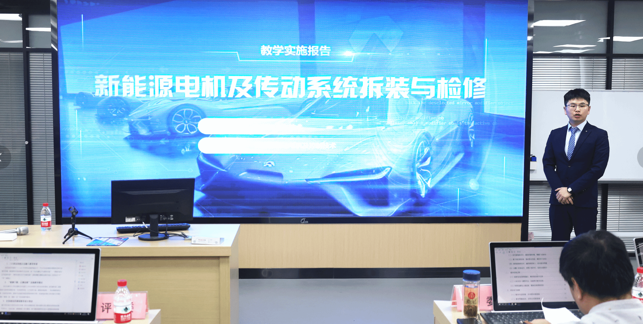 比赛现场,各参赛队按照抽签顺序上台,在规定的时间内分别从教学实施报告介绍、无生教学展示和答辩等环节展开比拼。各参赛教师准备充分、教学思路清晰、过程设计合理、语言表达精炼,AI人工智能深度运用,充分展示了课程改革成果,集中展示了必赢线路检测3003教师在知识传授、技能培养、课程思政育人等方面的专业水平和职业素养。