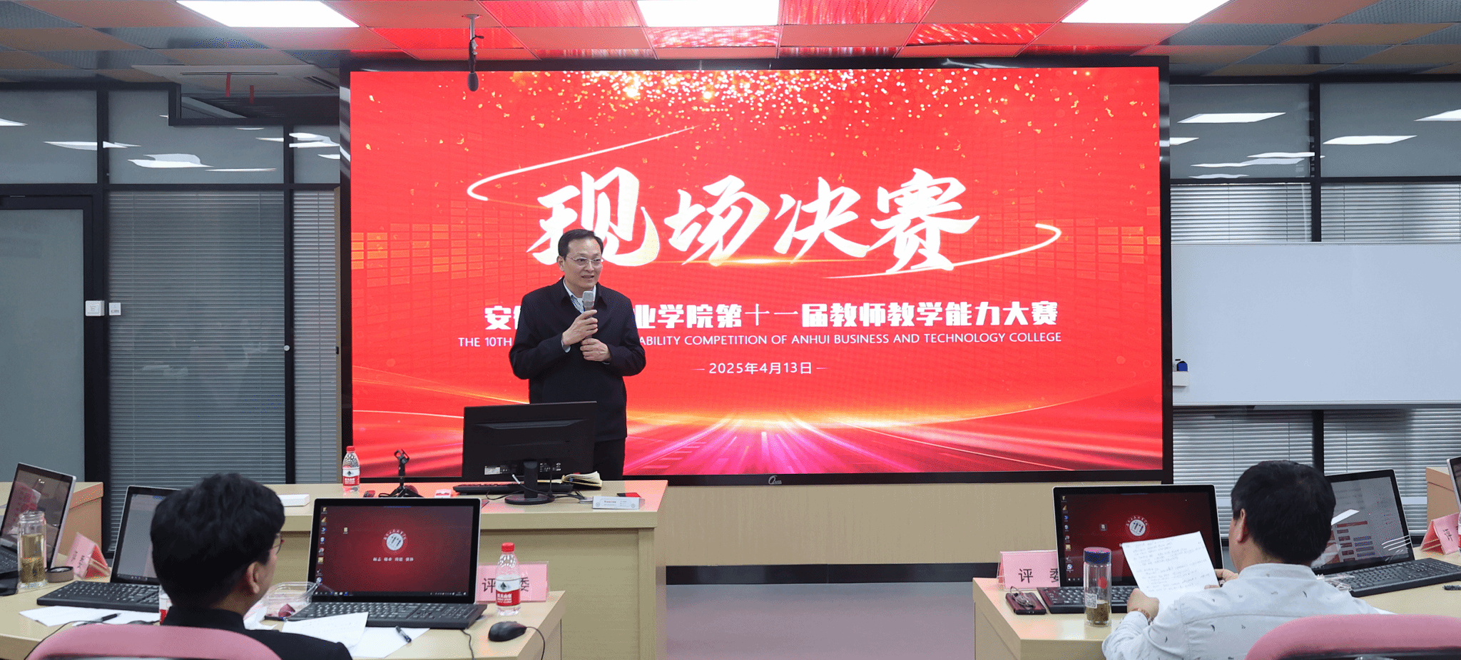 陈章奇为本次比赛作总结讲话,他首先对专家评委的辛勤付出表示感谢,对评委的点评进行了高度评价,对参赛教师的认真准备和精彩表现表示赞赏,对教务处的精心组织表示肯定。他指出对本次比赛过程的多个环节还需要进行反思,包括材料准备、答辩技巧、教学设计、教学手段和方法、职业教育改革的政策理解和落地等方面。他希望老师们要深耕课堂、追求卓越,教务处和二级学院要进一步重视比赛对教学的促进作用,赛教融合,强化保障,通过大赛树立教学改革标杆,提高课堂教学效果,提升人才培养质量。