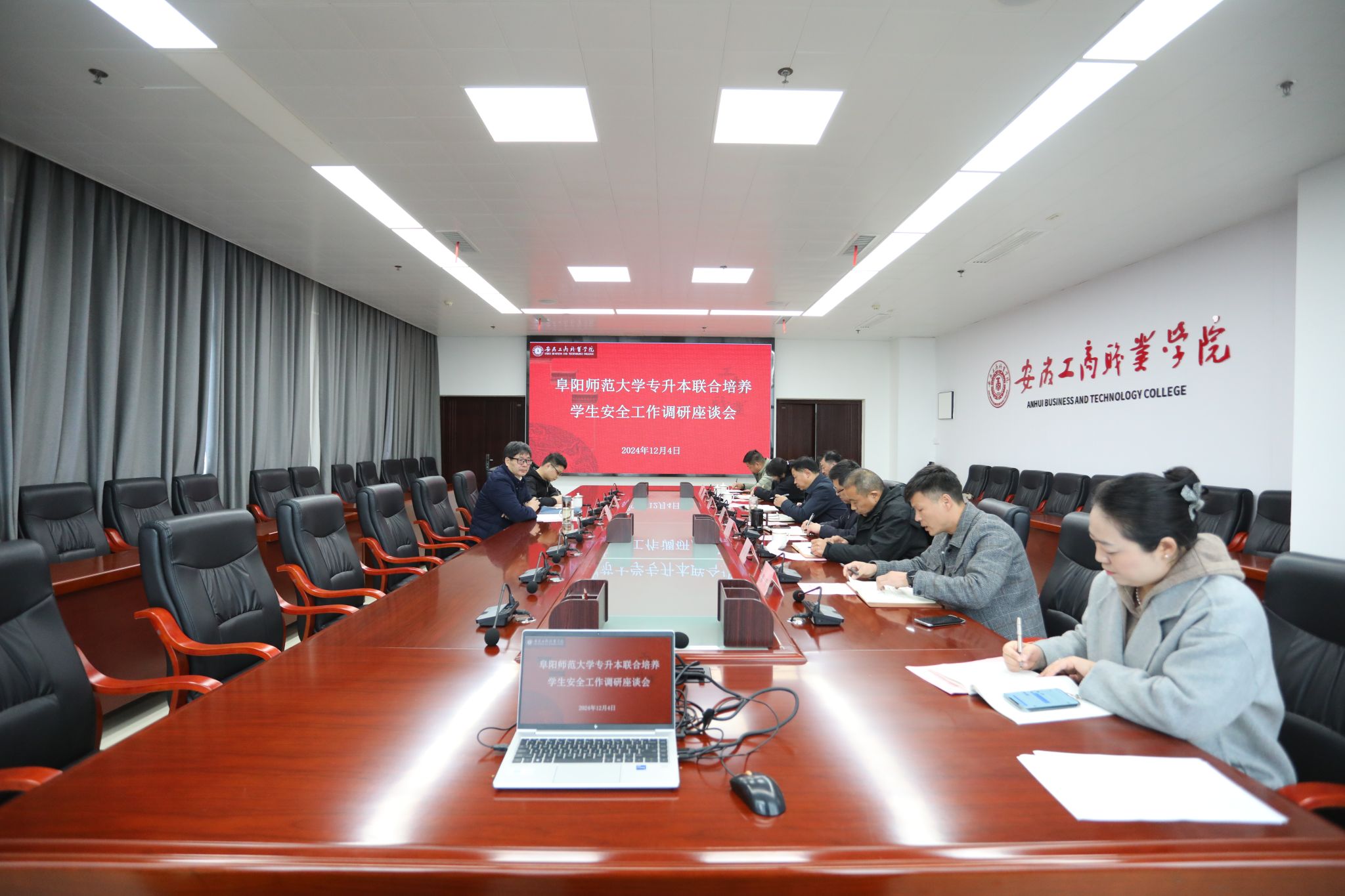 12月4日上午,阜阳师范大学党委常委、副校长张庆旭带队来必赢线路检测3003开展专升本联合培养学生安全工作调研。校党委委员、副校长胡捍东出席座谈会,学校教务处、学生处、保卫处、后勤管理处等有关处室以及信息工程学院、管理学院等二级学院负责人参加座谈会。