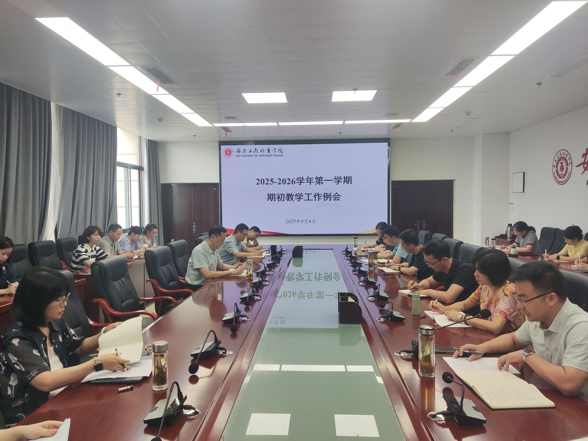 为全面统筹新学期教学工作,明确教育教学方向,推动教学质量持续提升,2025年9月4日下午,在综合楼第三会议室召开期初教学工作会议。会议由校党委委员、副校长陈章奇主持会议,各二级学院院长(主任)、副院长、教务科长及教务处、发展规划与质量管理处等相关职能部门负责人参加会议。