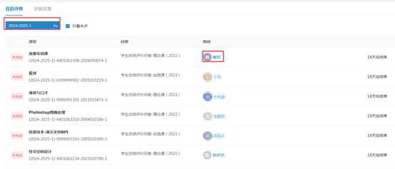 2.进入界面后会显示学生本学期要完成的所有评教任务,点击老师姓名即可进入任务进行评价