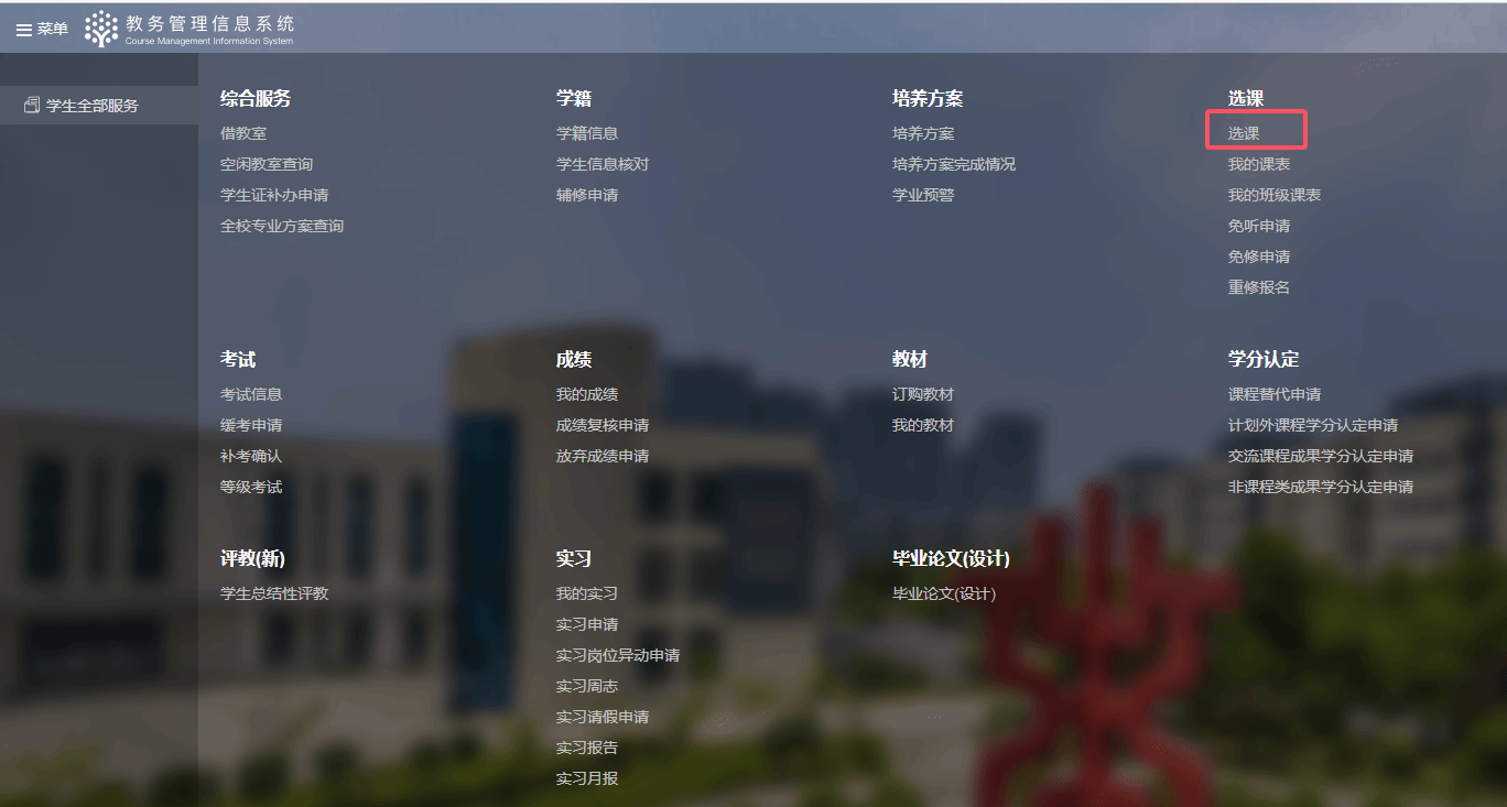 1.学生登录智慧教务系统选择【选课】模块,进行体育选课。