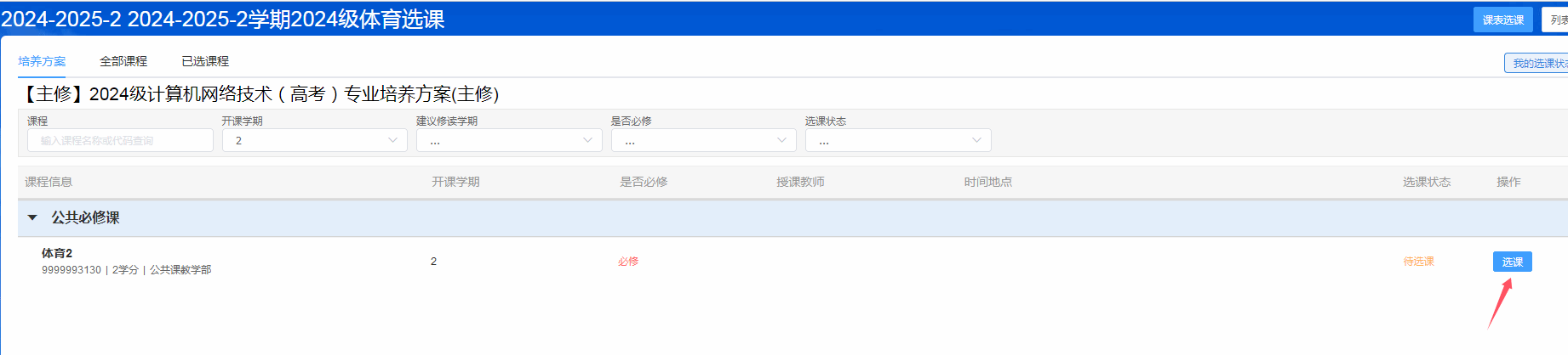5.逾期未参加体育选课的学生,由公共课教学部将随机安排至其它容量有剩余的课程和教学班学习。