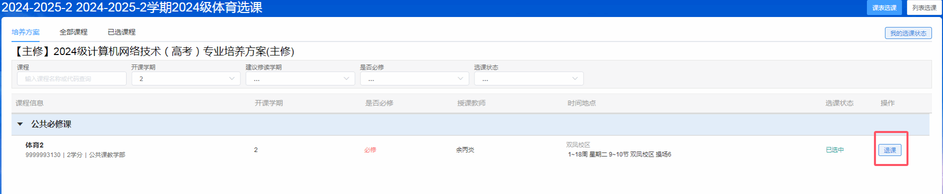 2.退课:如果在选课过程中选错或者想换课,可以先进行退课再重新选课。