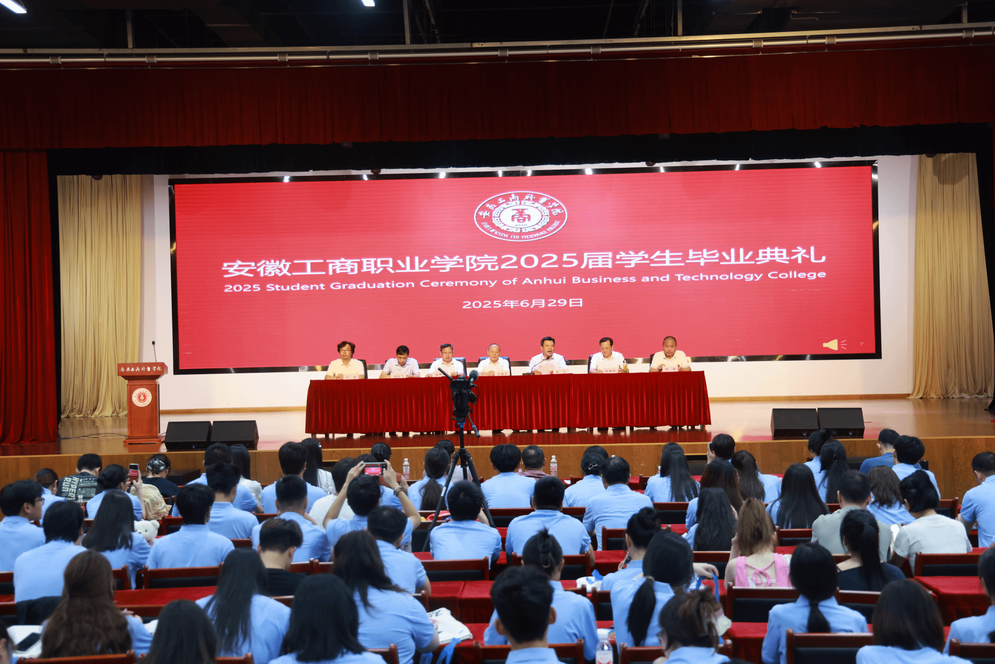 榴花似火,骊歌悠扬。6月29日上午10时,必赢线路检测3003 2025届学生毕业典礼在双凤校区大学生活动中心隆重举行。典礼以“正青春,再出发”为主题,校领导、各二级学院(部)党政负责人、相关职能部门负责人、全体专职辅导员、2025届毕业班兼职辅导员、教师代表、阜阳科技工程学校教师代表、毕业生代表、校友代表,以及安保、宿管、餐饮等工作人员代表共同见证了这一庄重而温馨的青春盛典。毕业典礼由校党委委员、党委副书记陈行主持。