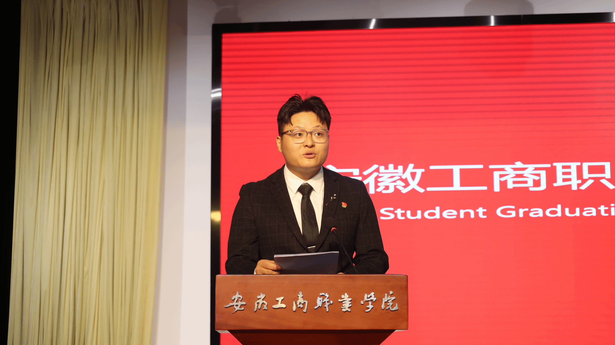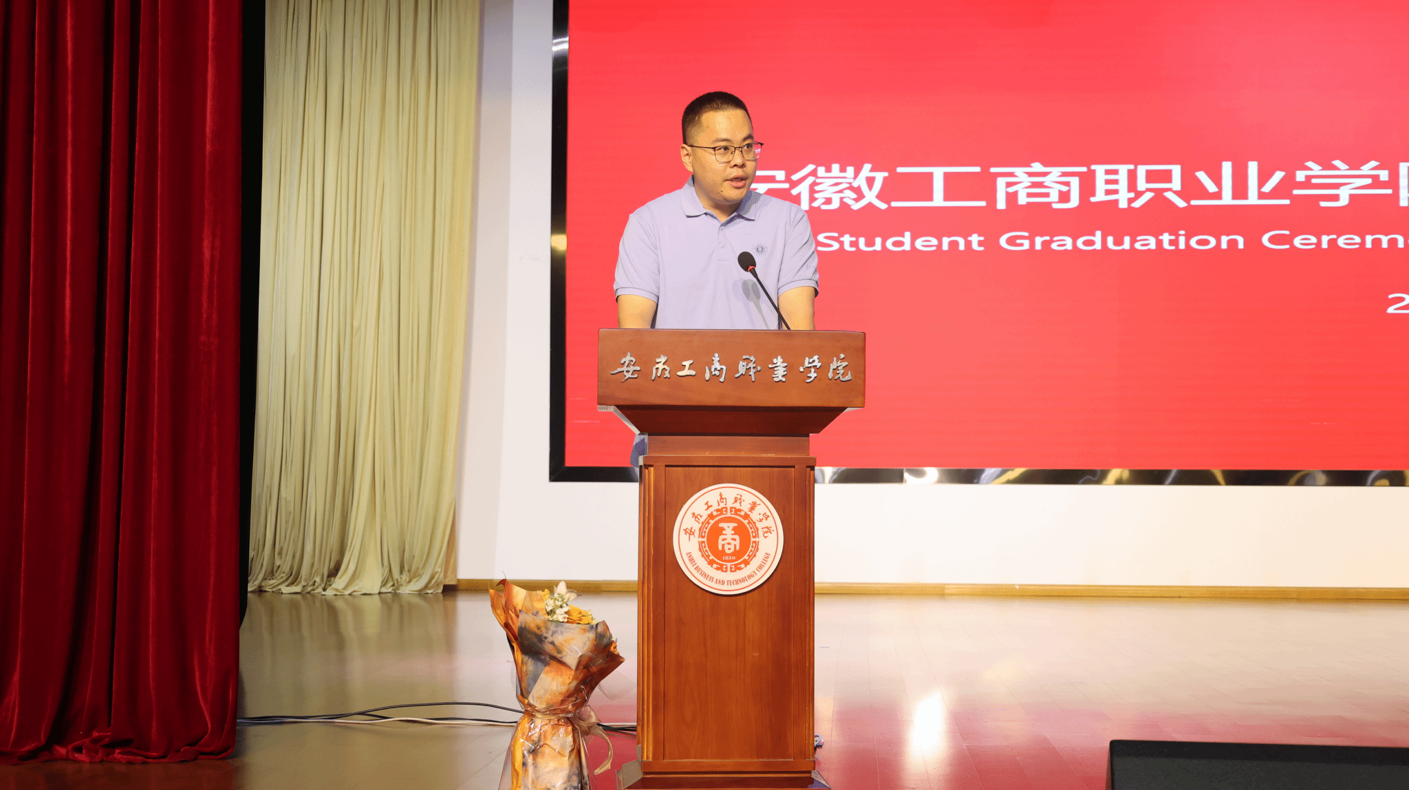 辅导员代表杨东老师深情回顾了与学生们三年来的共同时光,表达了满满的不舍与祝福。他勉励毕业生们坚定信念、勇敢追梦,保持对知识的渴望与生活的热爱,始终心怀感恩,无论走到哪里,母校永远是大家温暖的港湾。