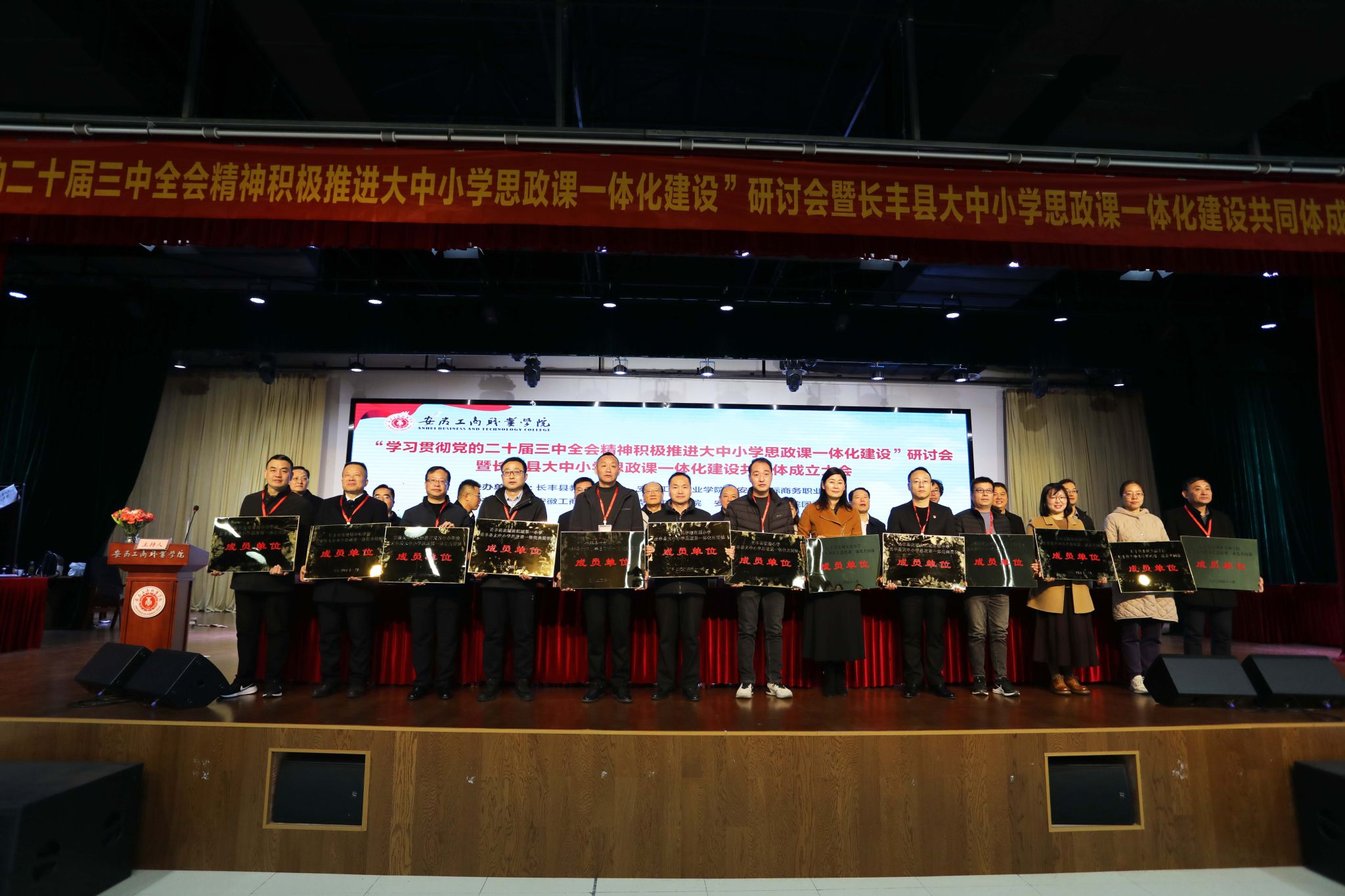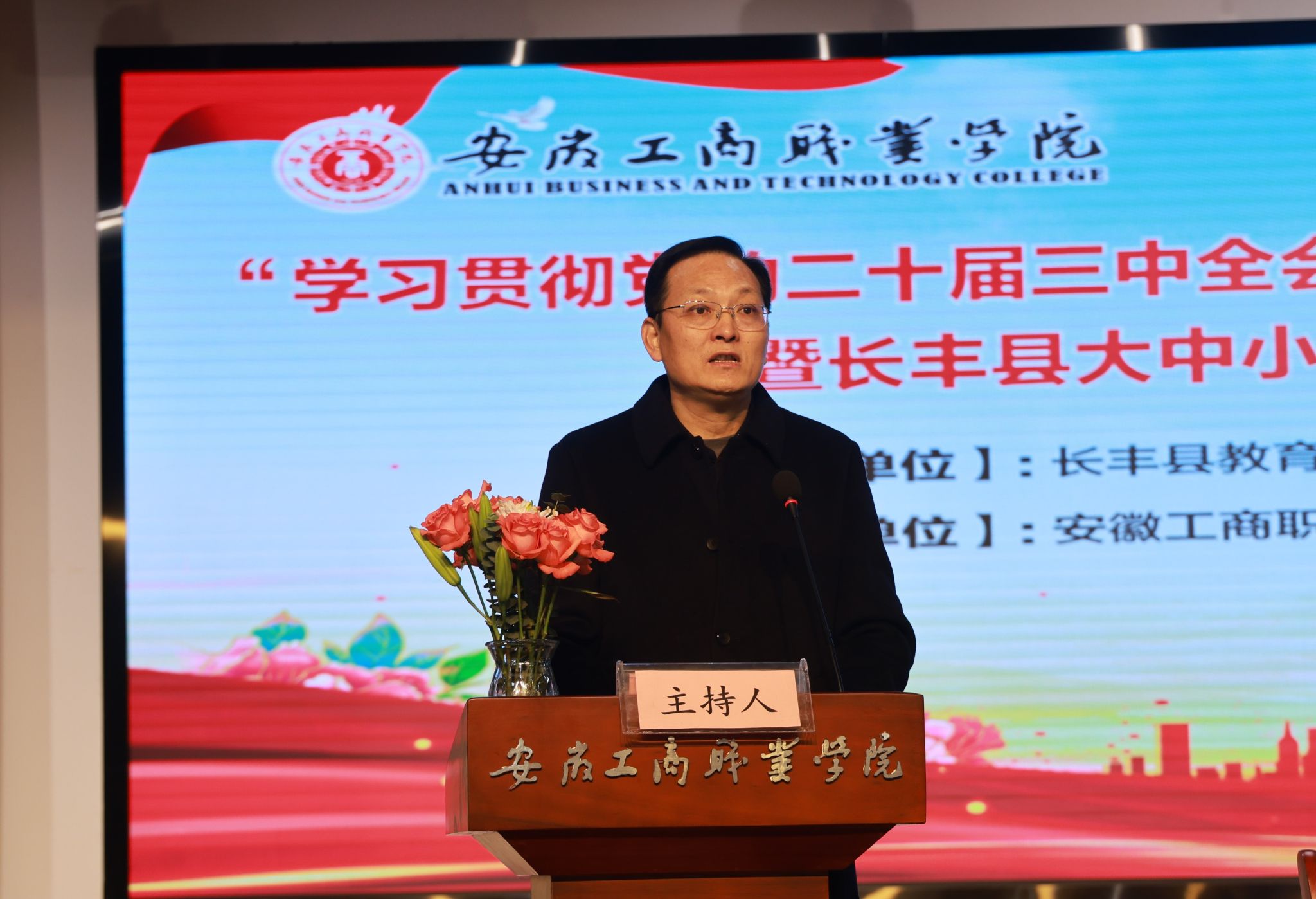 11月29日,“学习贯彻党的二十届三中全会精神,积极推进大中小学思政课一体化建设”研讨会暨长丰县大中小学思政课一体化建设共同体成立大会在必赢线路检测3003成功举行。会议由长丰县教育体育局、必赢线路检测3003、安徽国际商务职业学院共同主办。安徽省大中小学思政课一体化建设专家指导组组长、教授刘新跃、必赢线路检测3003党委书记齐建平、合肥市教育局党委委员、副局长张艺国,必赢线路检测3003党委委员、副校长陈章奇、长丰县教育体育局党委书记、局长杨维成、必赢线路检测3003党委委员、党委宣传统战部部长、艺术设计学院党总支书记孔成等出席启动仪式并为共同体成员单位授牌,安徽中医药大学等专家学者及来自长丰县28所大中小学主要负责人及教师代表100余人参加大会。必赢线路检测3003党委委员、副校长陈章奇主持会议。