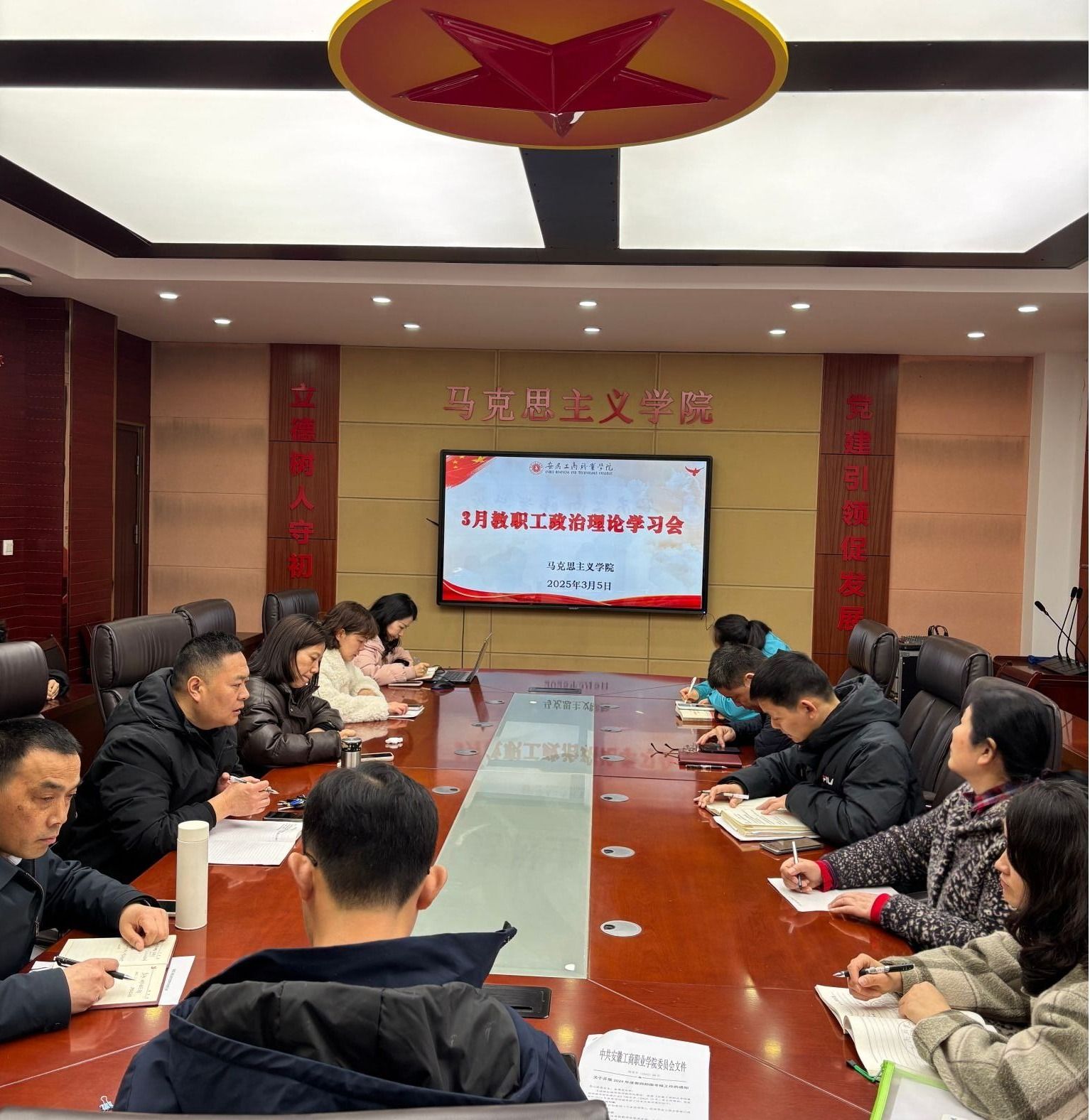 3月5日,马克思主义学院在明德楼会议室开展教职工政治理论学习,学习《习近平总书记关于党的建设的重要思想概论》,学习《教育强国建设规划纲要》(2024-2035)精神。院党总支书记、院长葛成飞主持会议并带头发言交流。