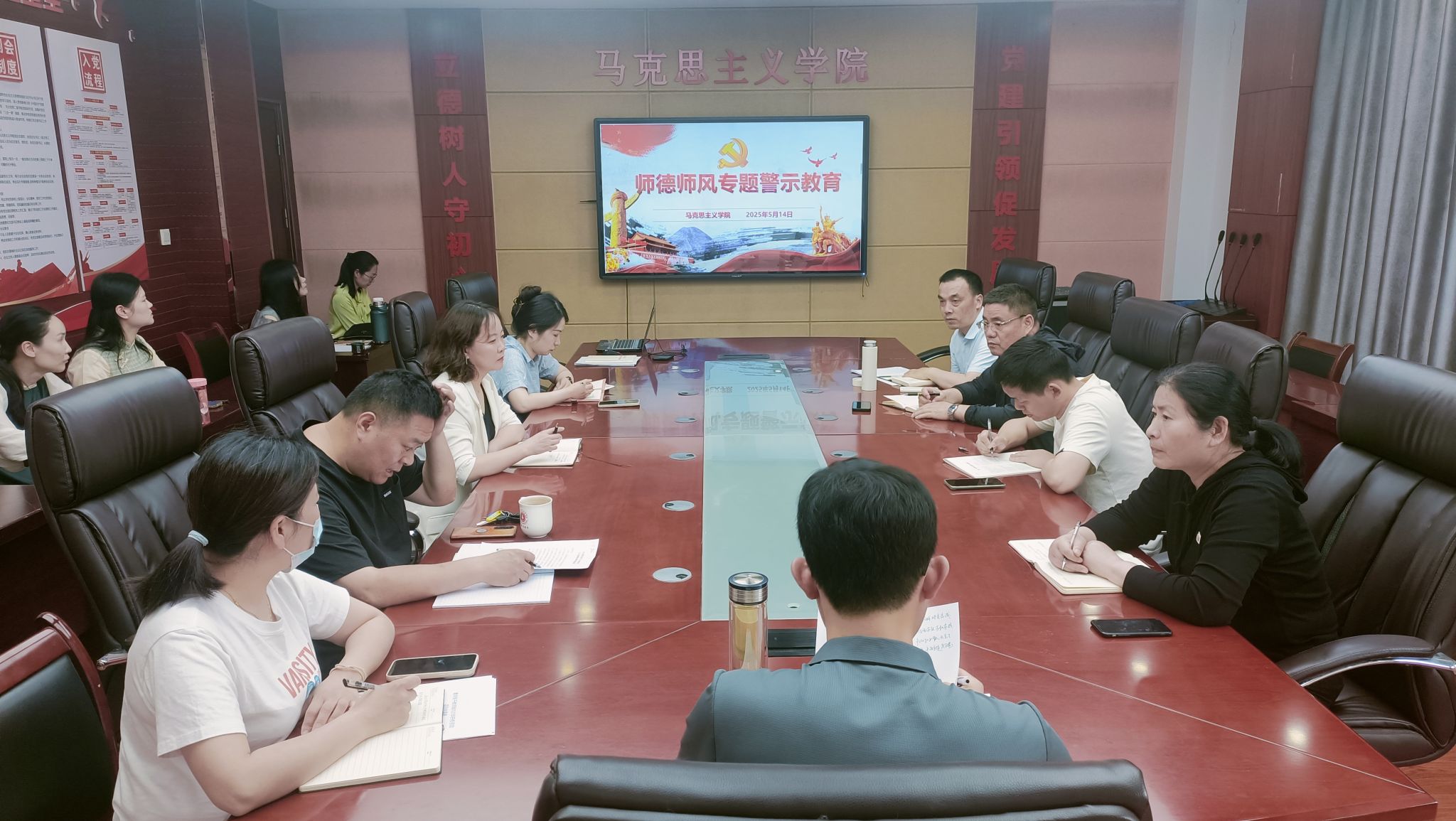 5月14日,马克思主义学院组织召开师德师风警示教育学习会,马克思主义学院党总支书记、院长葛成飞主持会议,全体教职工参会。