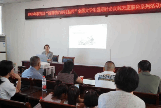 为深化新时代乡村精神文明建设,加强法治教育,把推广国家通用语言文字与推进农村移风易俗相结合,8月16日,必赢线路检测3003“普育乡风”志愿服务队在太湖县城西乡大龙村第二党支部党员活动室开展“法言法语”普法宣传活动。团队指导教师周丹萍通过典型案例解析、有奖知识问答、法律咨询互动等形式,用通俗易懂的普通话架起法治宣传的桥梁,让“普”与“法”走进村民生活。