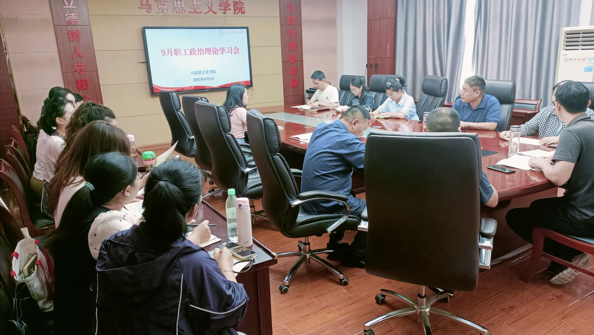 9月10日,马克思主义学院组织全体思政课教师召开新学期教职工政治理论学习会,会议以“传承伟大抗战精神、赋能思政教学”为主题,为新学期育人工作凝心定向。马克思主义学院主要负责人主持会议。