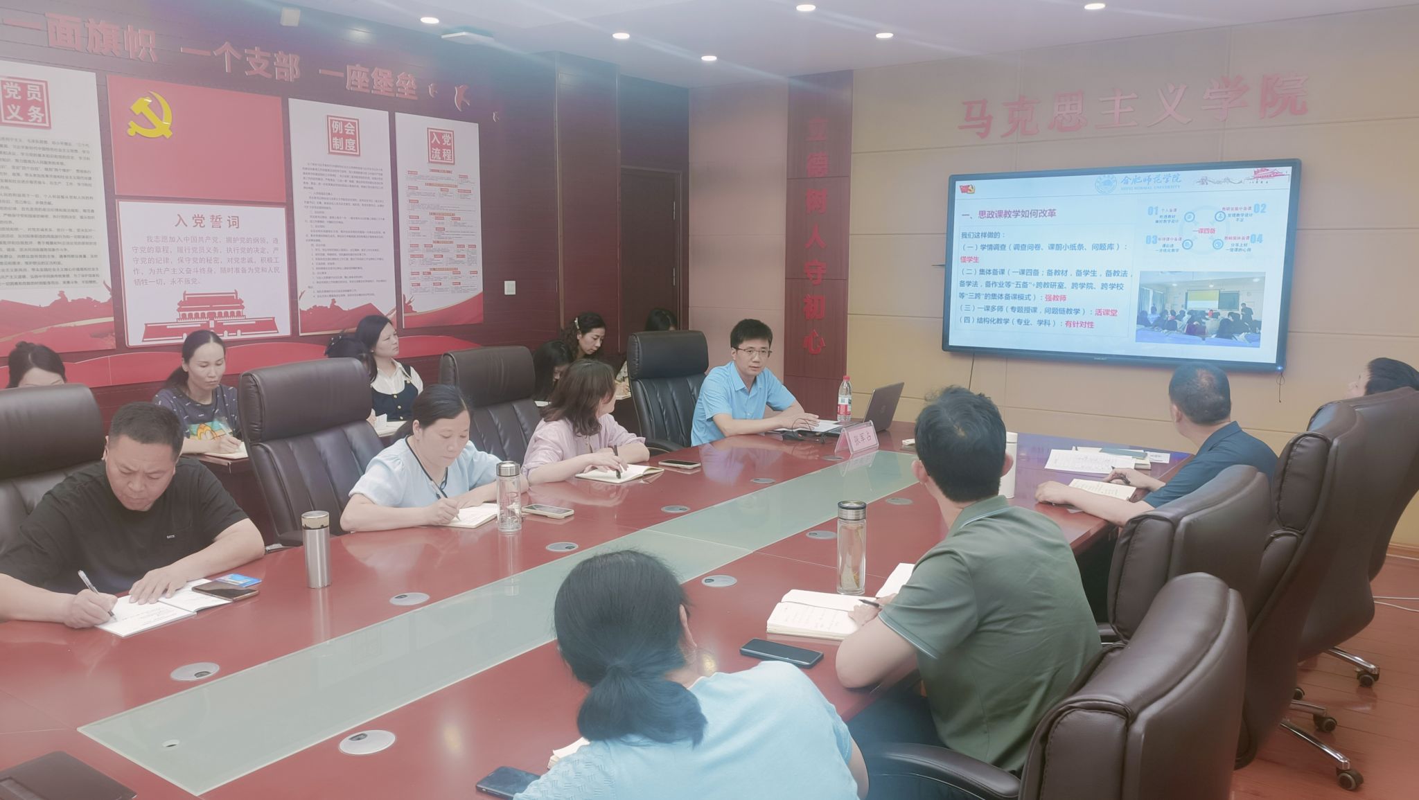 关于教研室建设,他强调团队协作与教师专业发展的重要性,建议通过定期教研活动、教学观摩与培训提升教师教学水平,打造结构合理、业务精湛的思政课教师队伍。