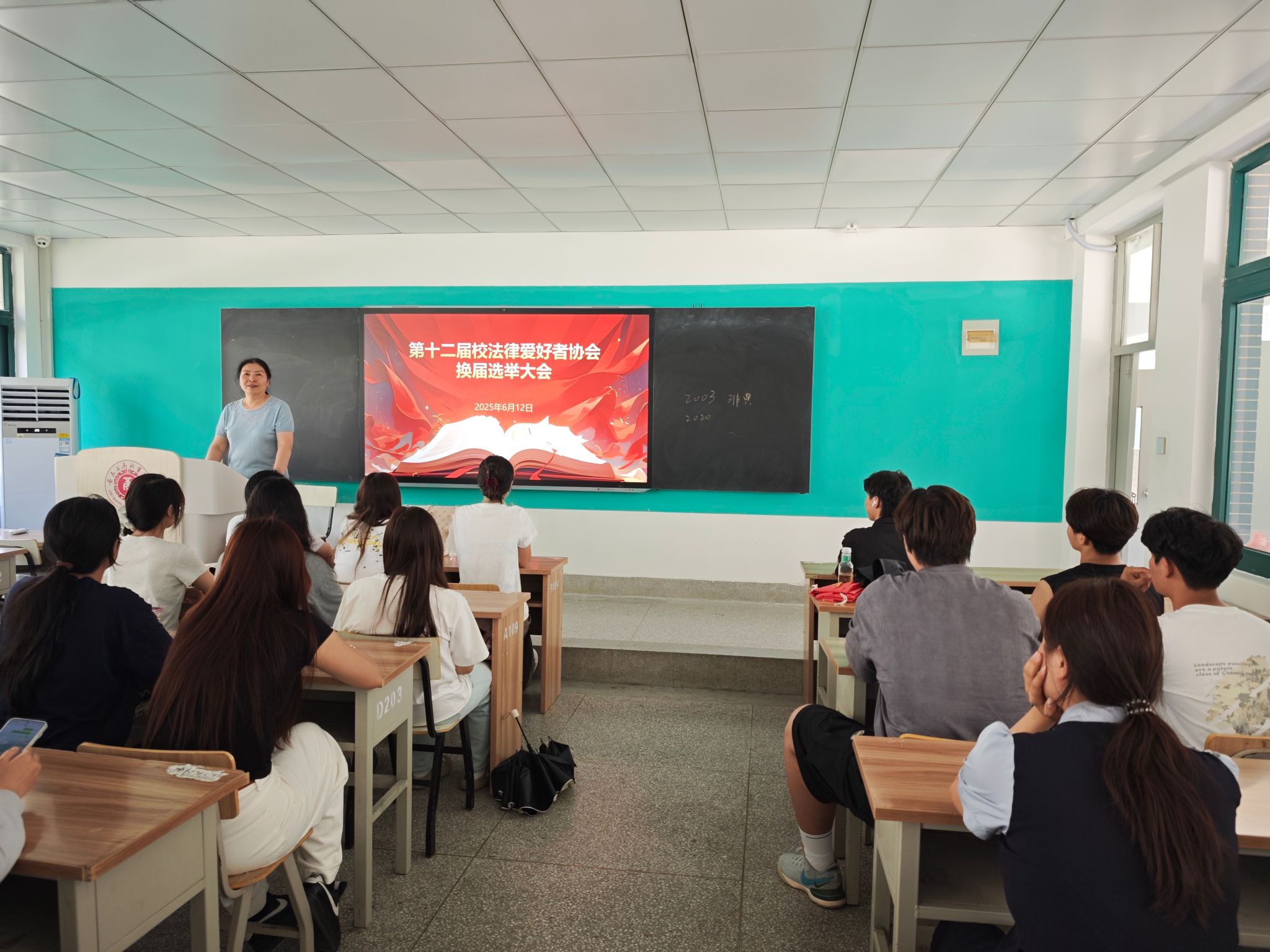 6月12日,在韦静老师的指导下,校大学生法律爱好者协会在教学楼B103召开会员大会,圆满完成了校第十二届法协的换届选举工作。